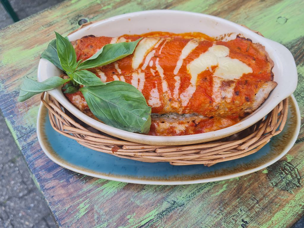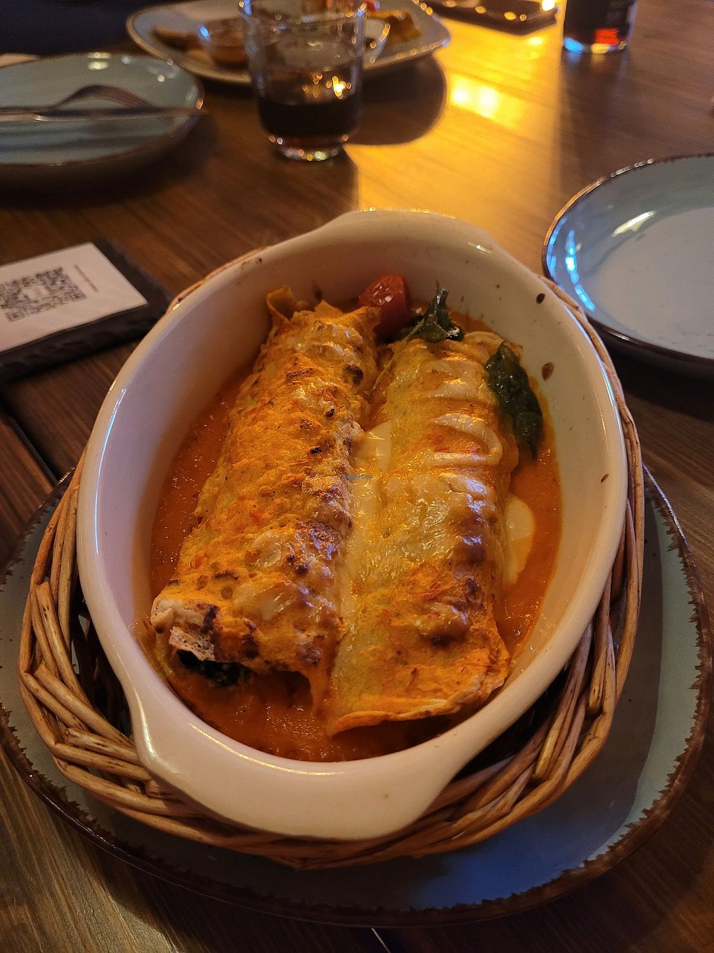 Französische Galette mit Spinat Cashew Ricotta Füllung, Tomatensauce, …