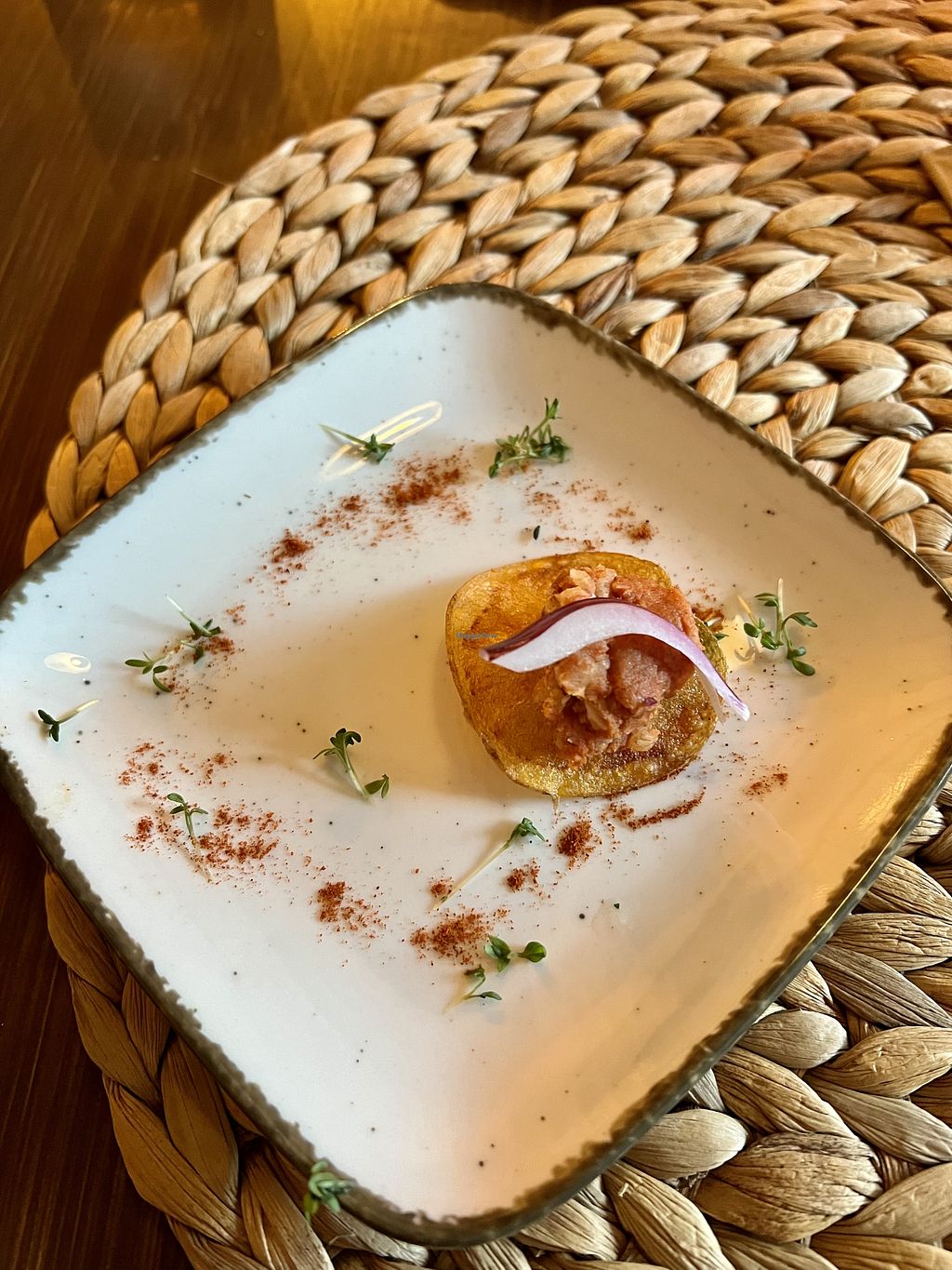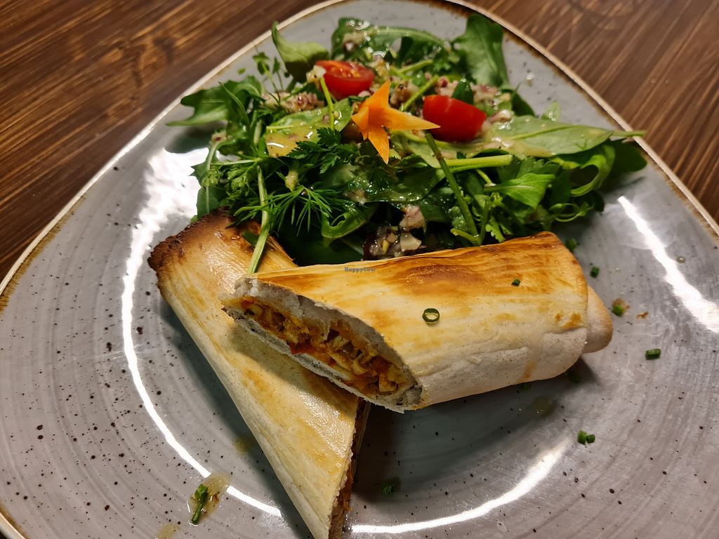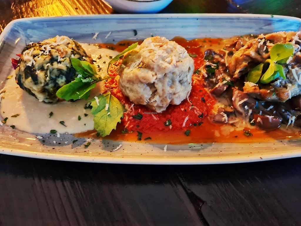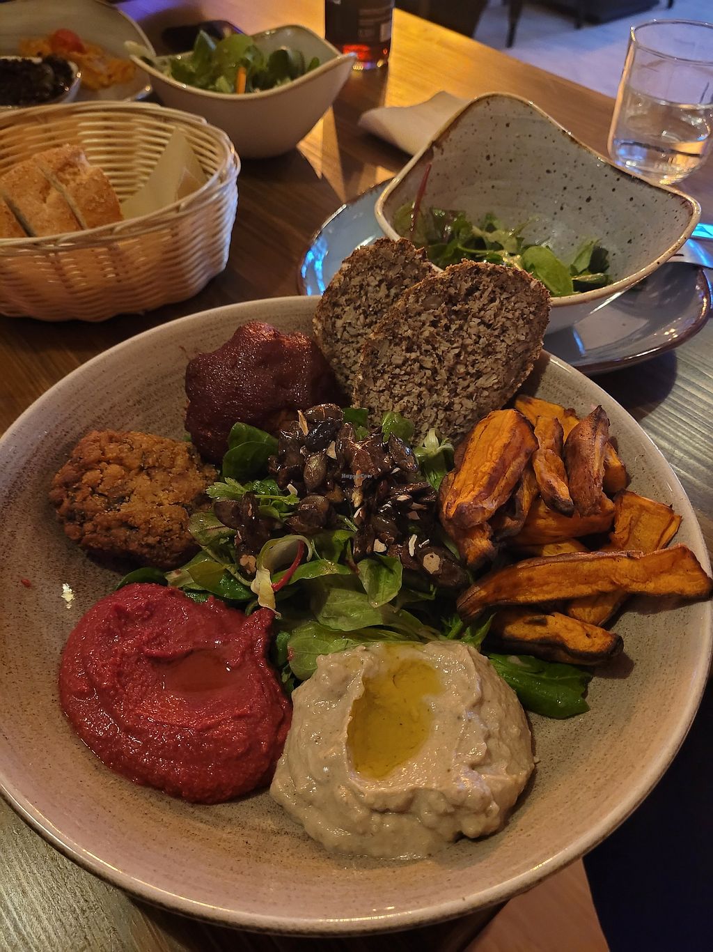 Pilzsüppchen, Karottenlachs, Vleischsalat und Tofurührei