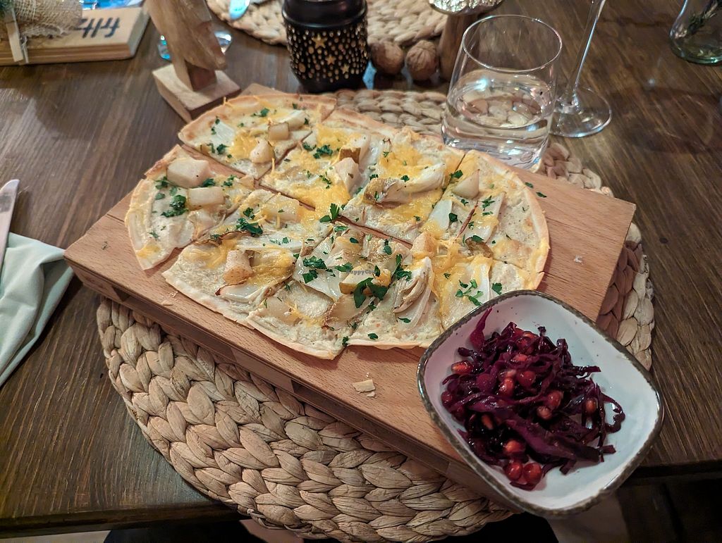 Flammkuchen gratiniert mit Chiccoree und Birne