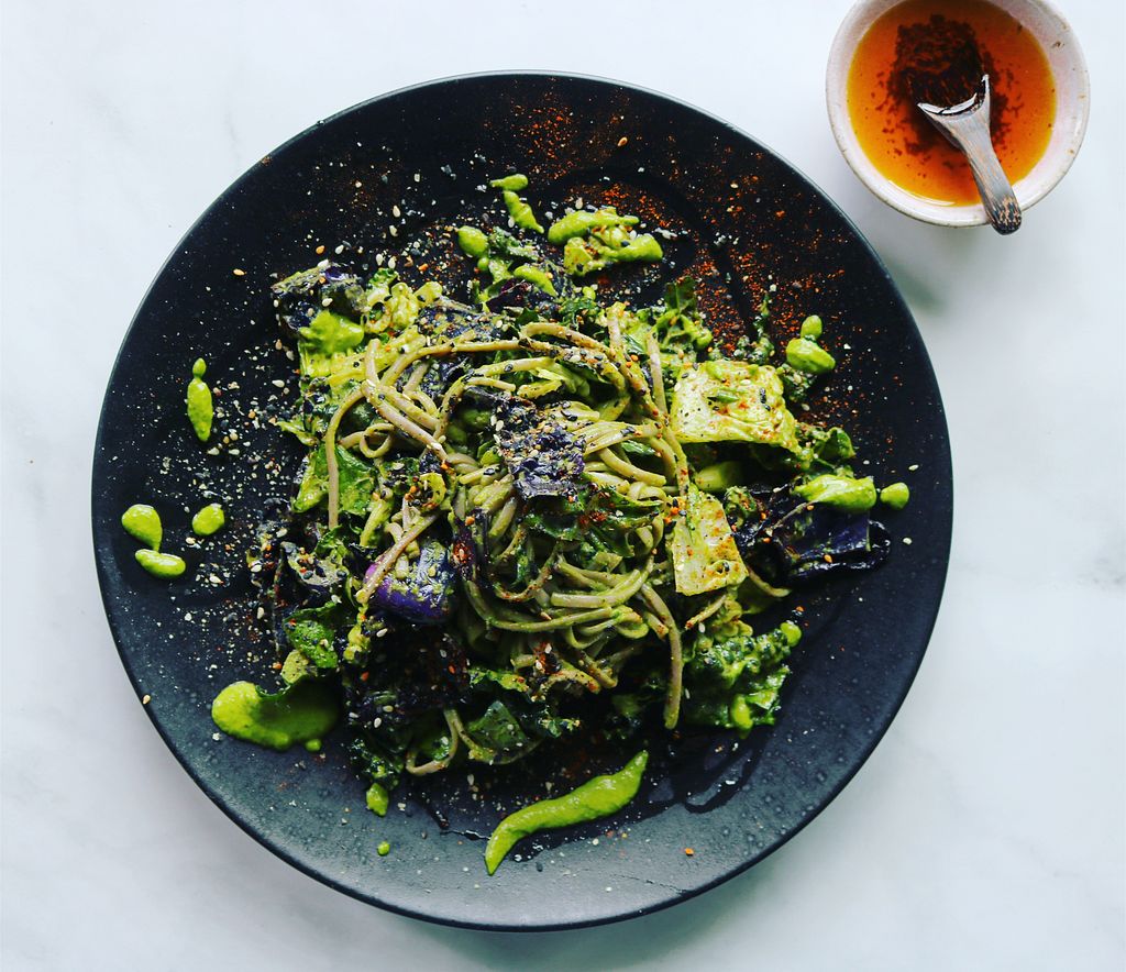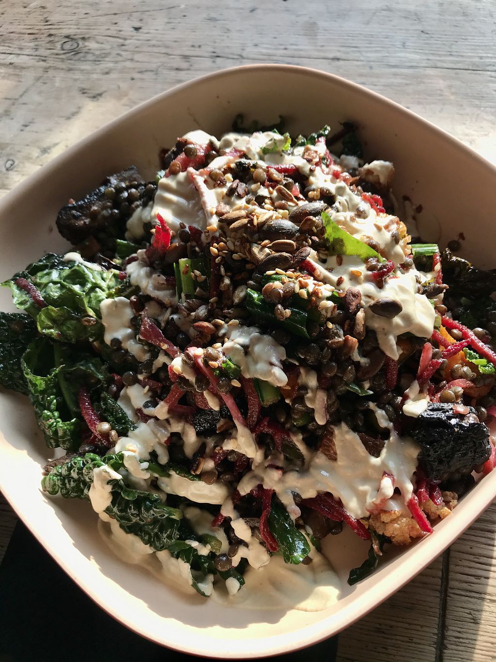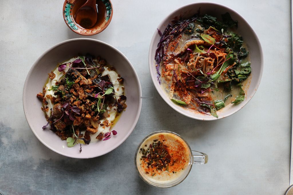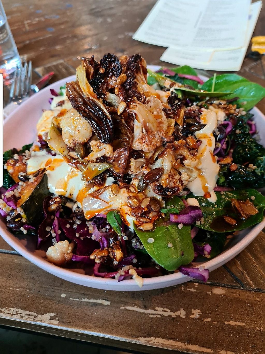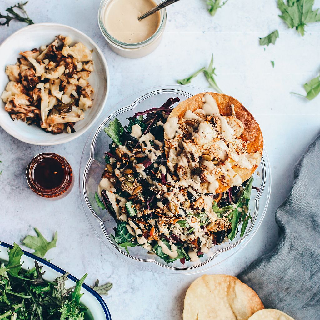 Scallion pancake - crunchy Asian slaw, spiced tempe with a carrot & gi…