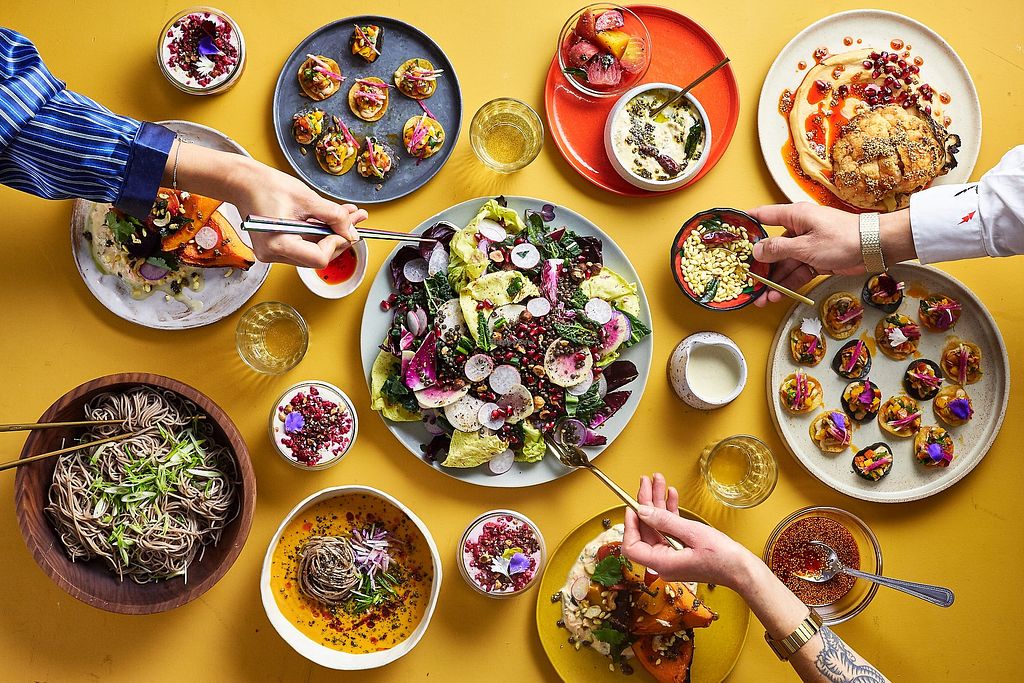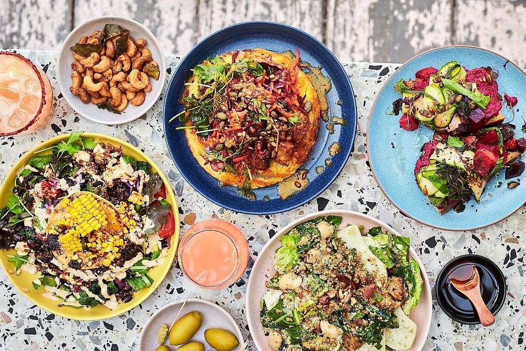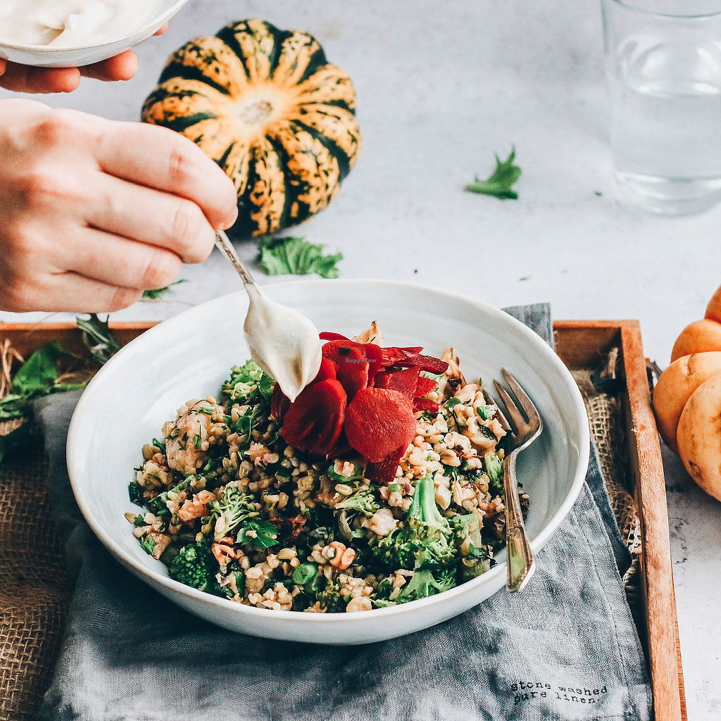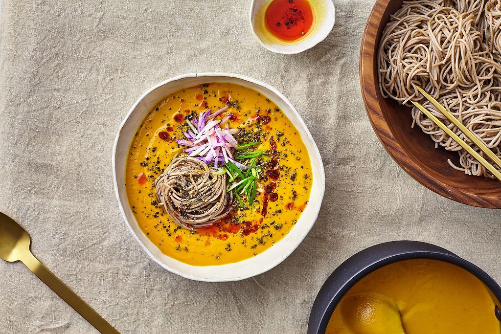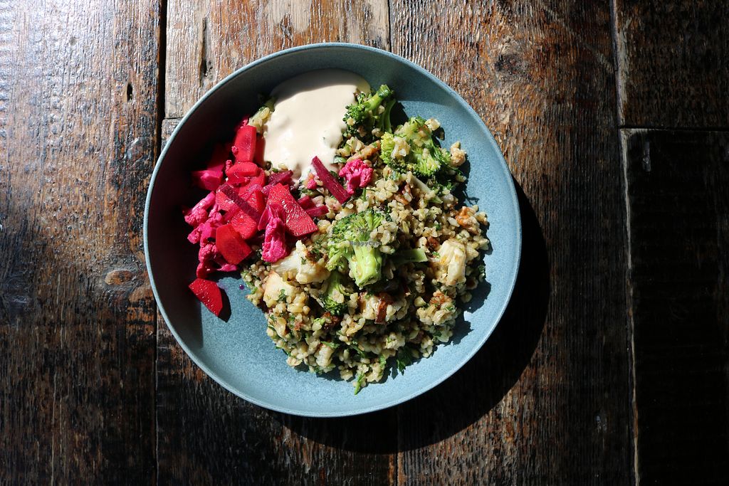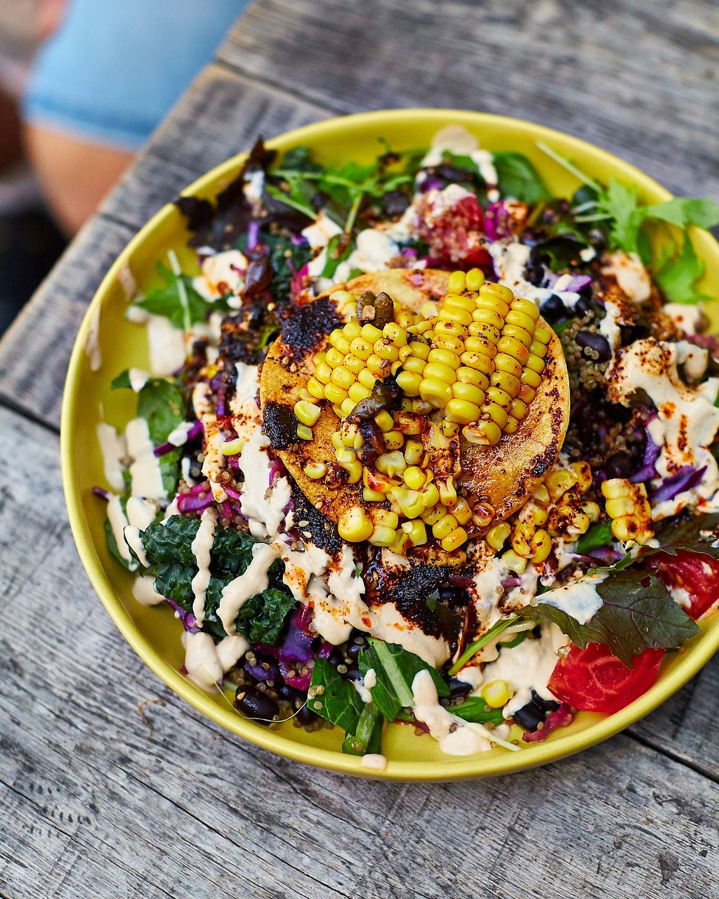 Scallion pancake - crunchy Asian slaw, spiced tempe with a carrot & gi…