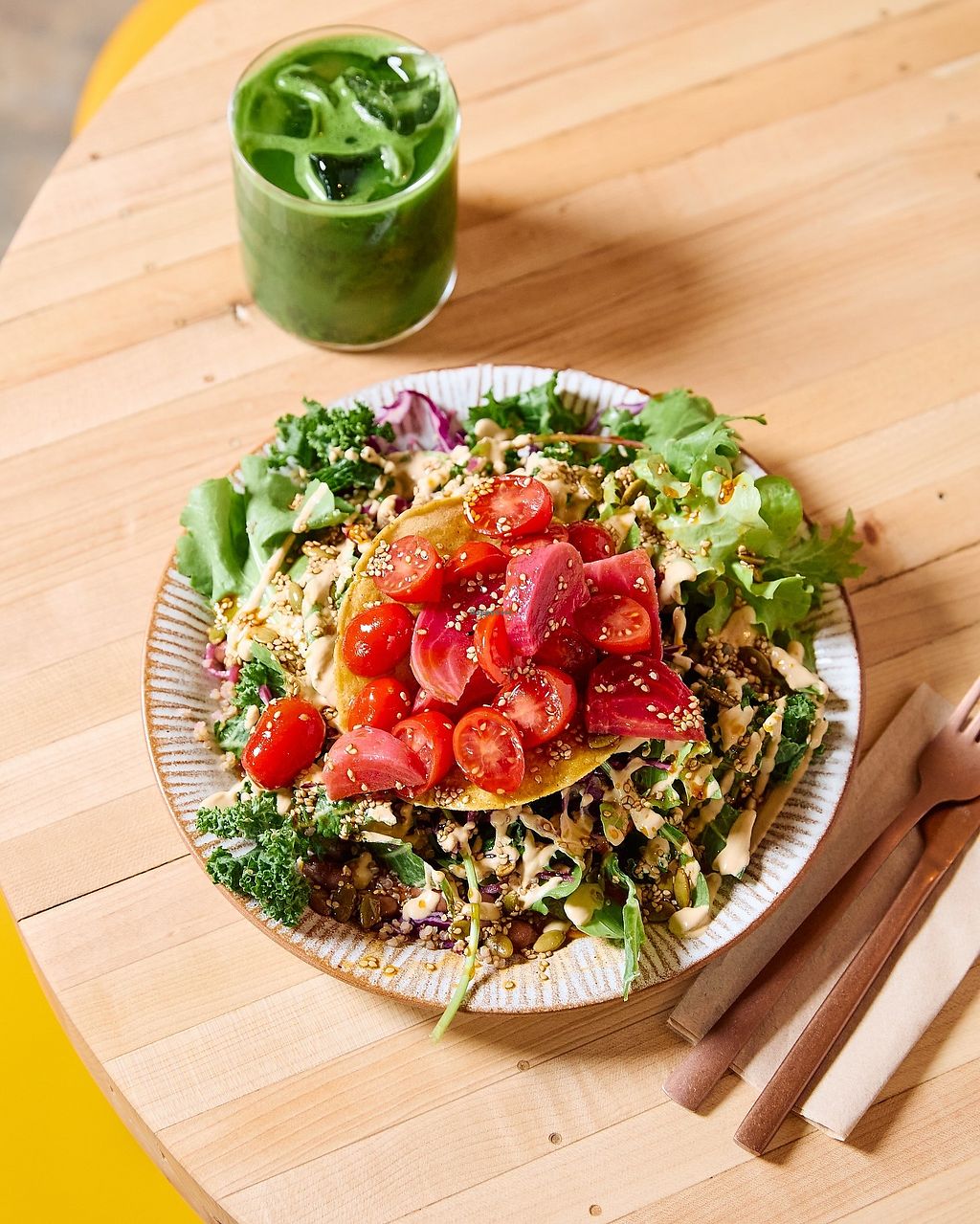 Just discovered this place, and love it. I chose it for a healthy but tasty vibe, and it delivered! Had a Jamu Jamu Fresca (coconut water with turmeric and ginger Indonesian paste), with the Tostada. And added extra tempeh for more protein, and because it was Club Cultured tempeh and marinated in extra seasonings to get the Indonesian flavours. The whole tostada and lots of crunchy greens, sweet pickled beetroot, and tahini and sesame. The crunch and the spice and sweetness. The owner also added some habanero oil in the side to give it even more of a kick.