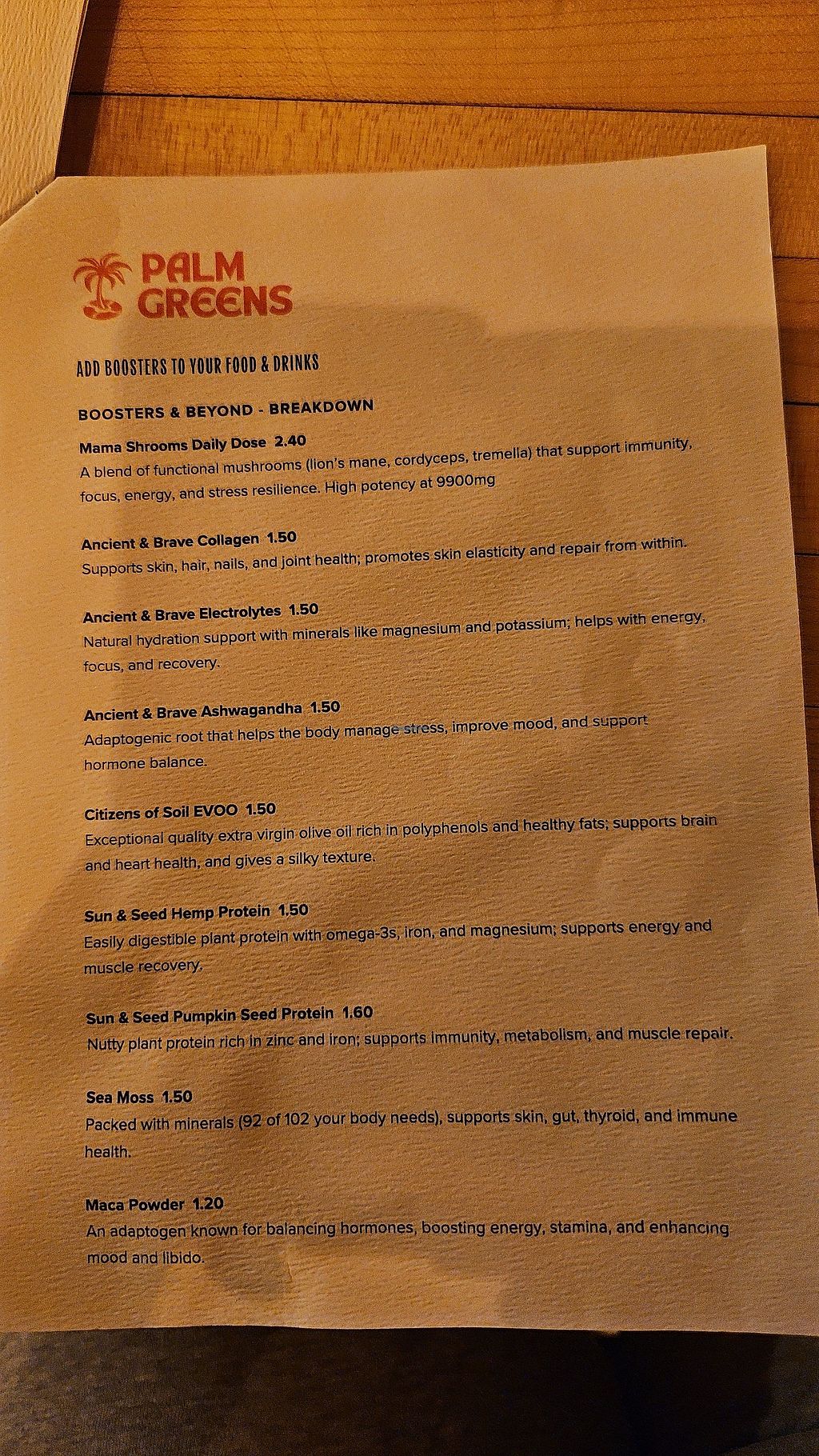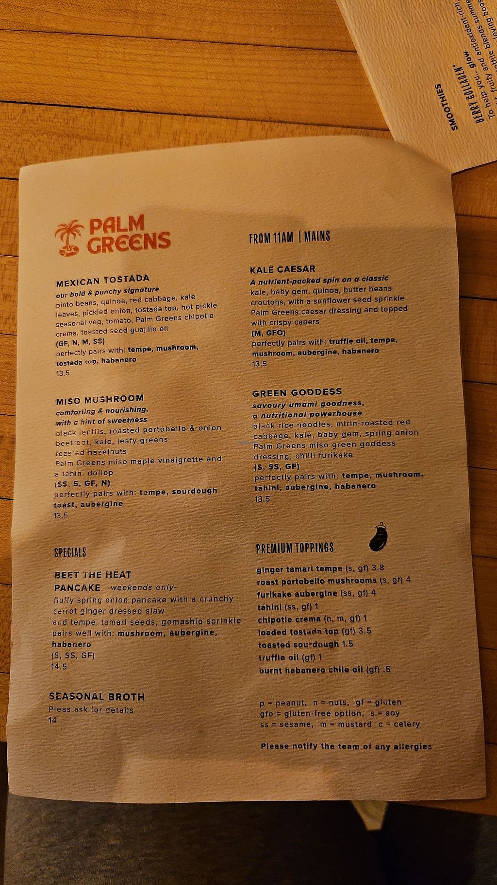 Read moreAnother thing to note, my food came out from Palm Greens at least 15 minutes after the other people at my table, all of which ordered from different places in the food hall. This was a little perplexing because I ordered a bowl, which is essentially an assembly exercise whereas everyone else at my table ordered things that actually had to be cooked to order (and then assembled). That said, just come in with the expectation that you might be waiting a bit longer.