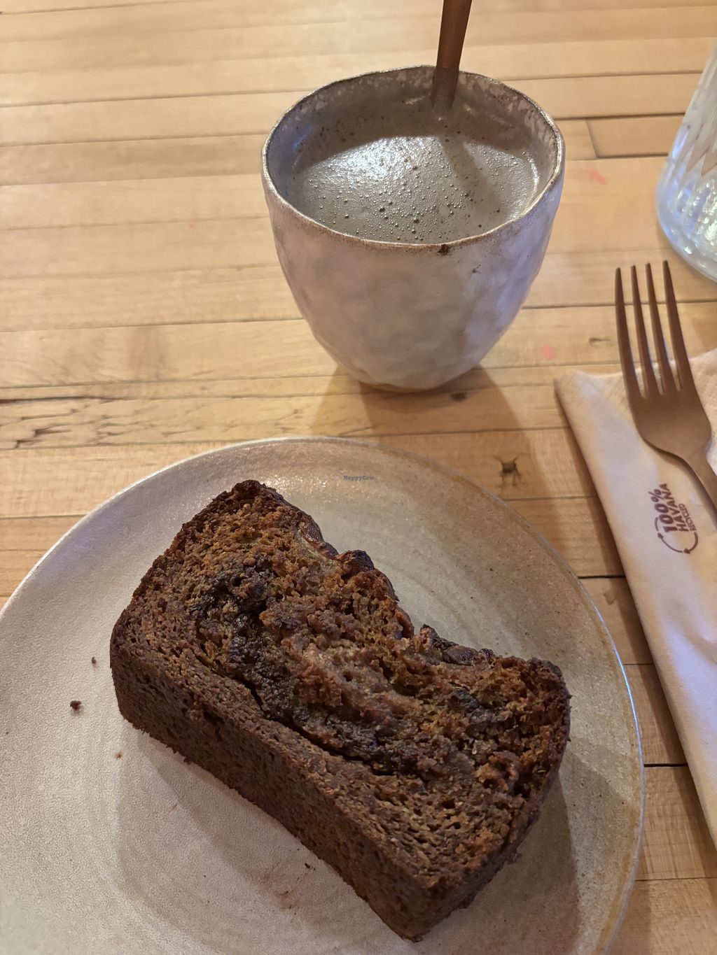 Read moreAnd then for dessert I had a freshly baked straight from the oven chocolate chip banana bread, with a black sesame latte! The latte was really warming and a smooth sesame flavour with the frothed soy milk- great accompaniment to the soft melted chocolate banana bread.