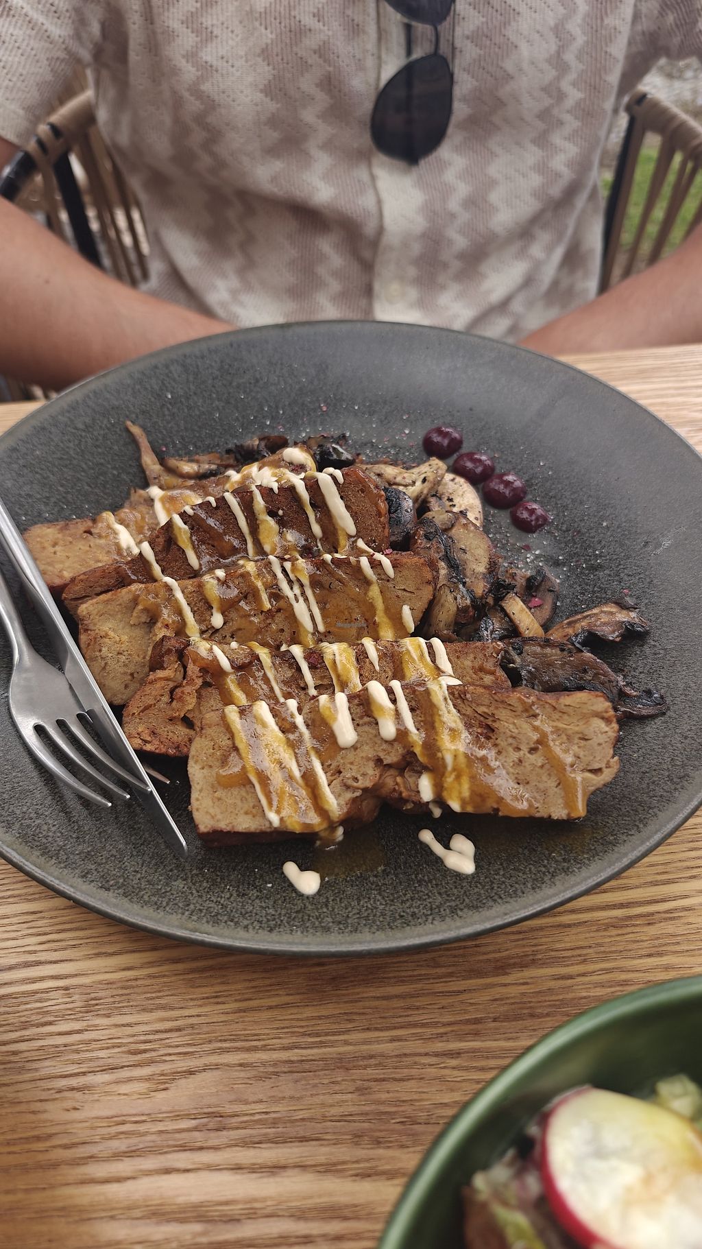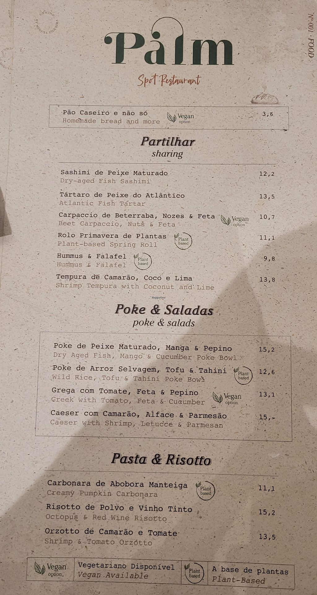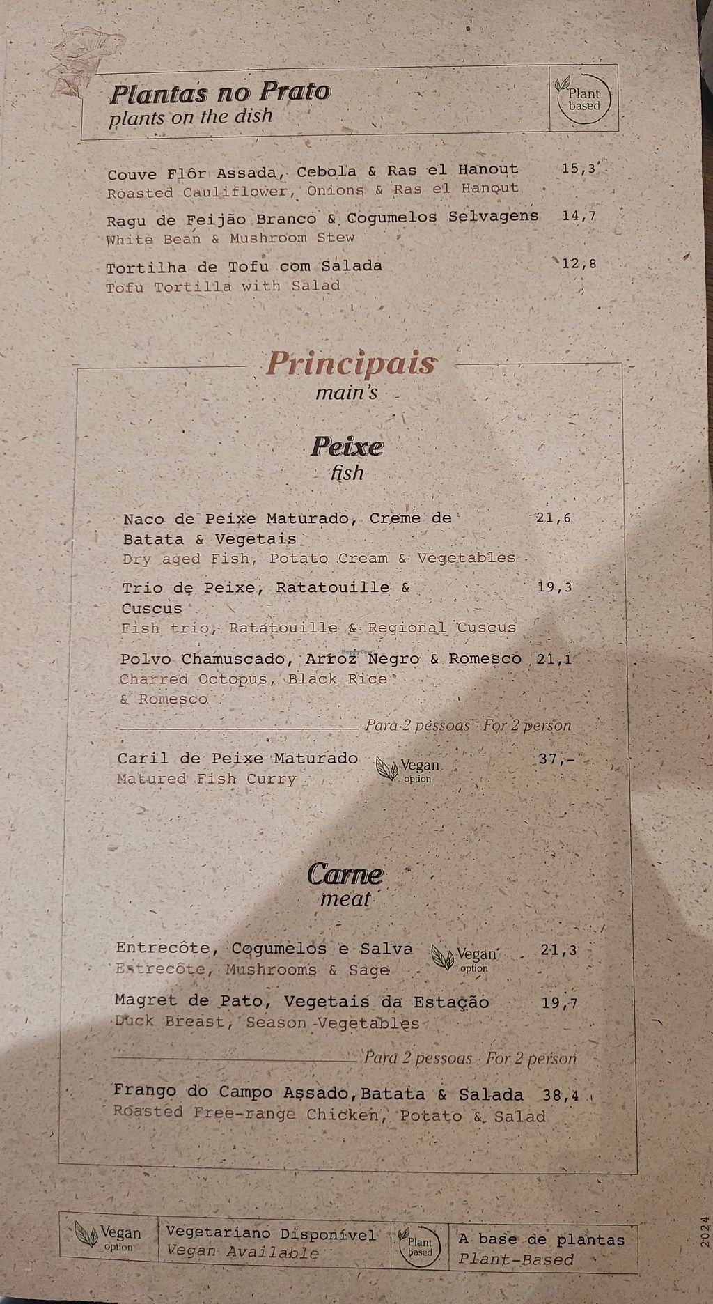 Es gab einige vegane Optionen, jedoch war das Labeling verwirrend. Es gibt eines mit der Aufschrift "Plant Based" und eines mit "Vegan Option" was aus dem protugiesischen "vegetariano" übersetzt wird. Wir hatten den Tortilla, der wirklich sehr lecker war. Und das vegane Steak (Seitan) mit Pilzen. Die Pilze waren super gewürzt, der Seitan jedoch sehr schwammig und fad. Dafür genauso viel zahlen zu müssen, wie für die Variante mit Fleisch ist traurig. Das Hausgemachte Kombucha war wiederrum sehr lecker.