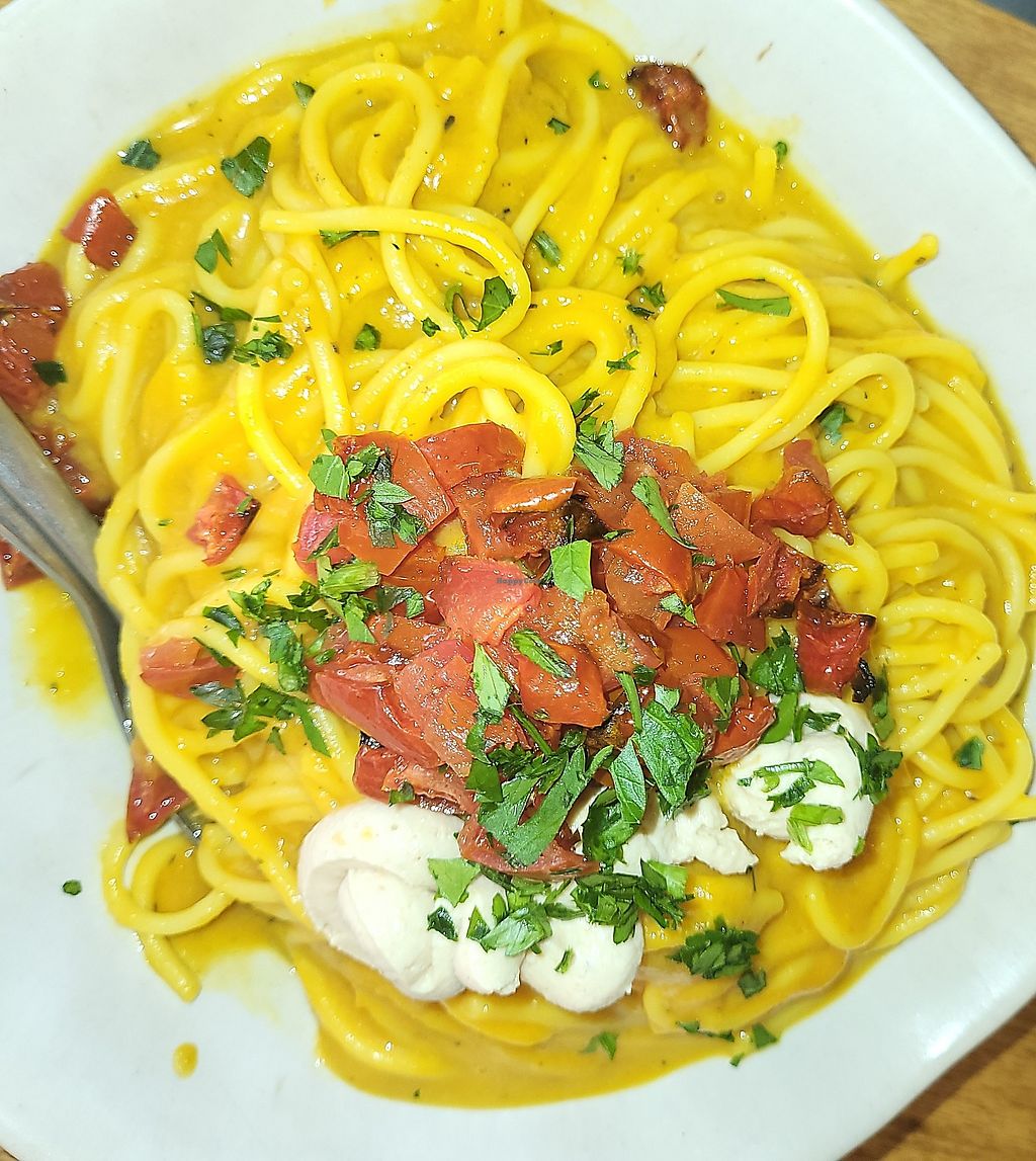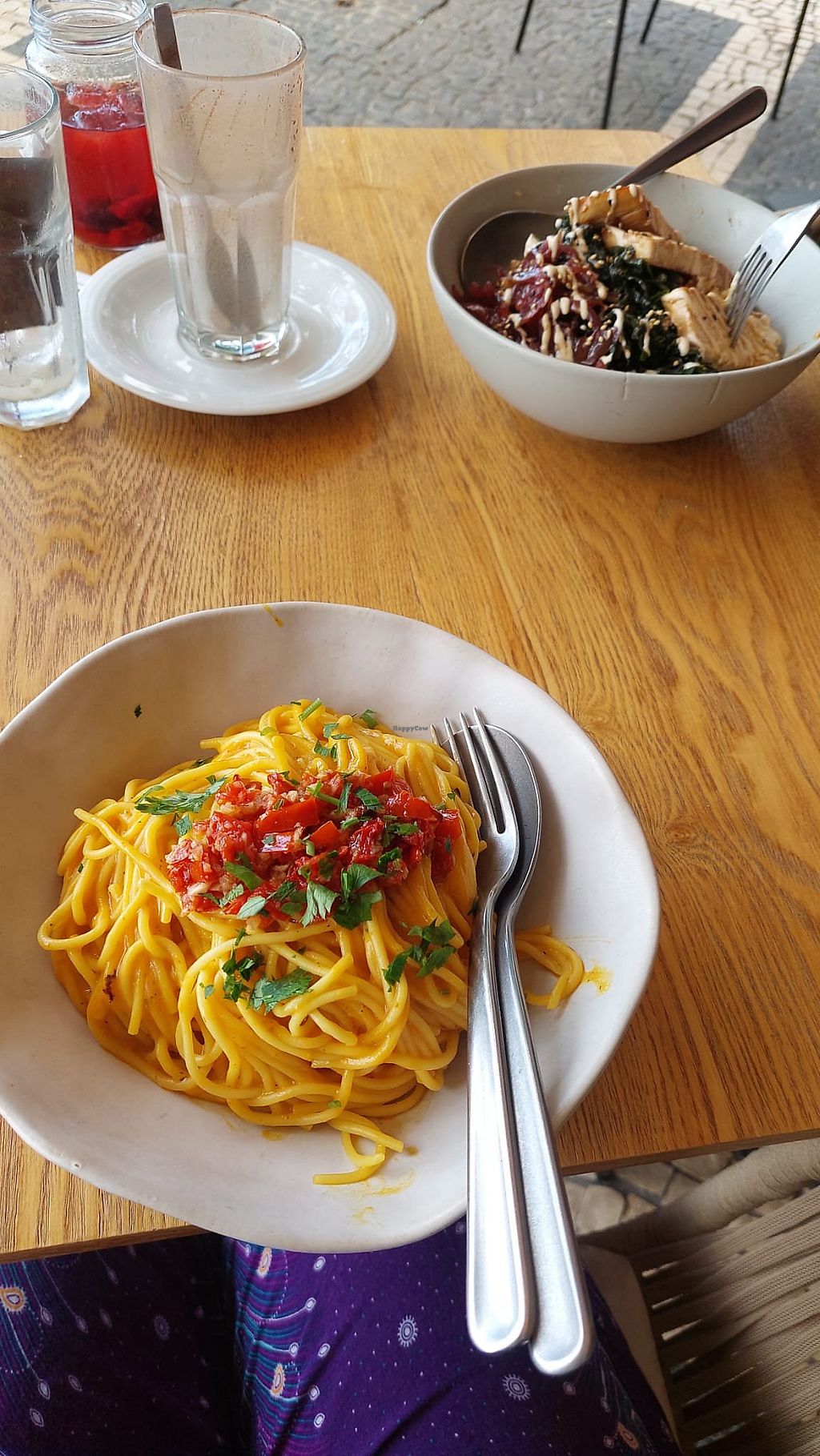 Read moreWir hatten die Kürbispasta sowie die Frühlingsrollen. Die Pasta war sehr viel die Frühlingsrolle dafür recht wenig.