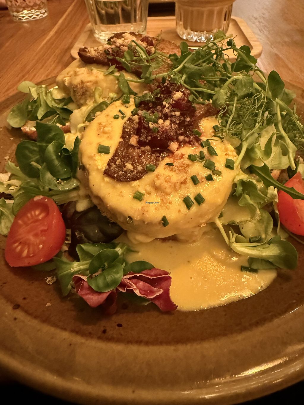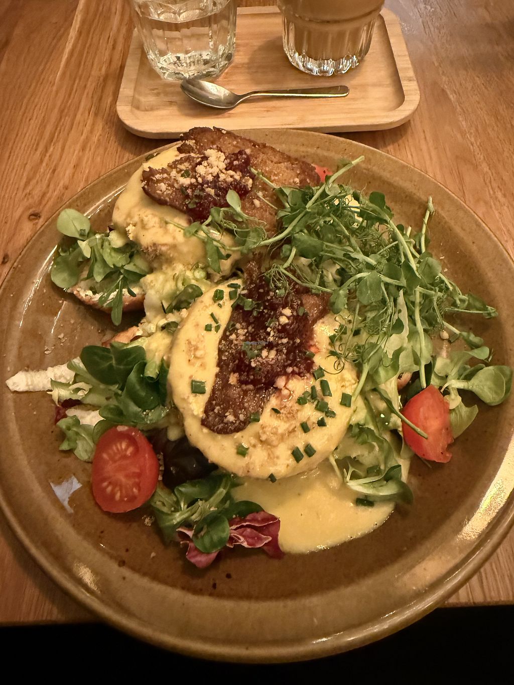went here on our last day and shared the “tofu benedict” and “tofu scramble”. Food and drinks came quickly and the staff here is very friendly. The tofu benedicy really is something special and was a cool experience, as I’ve never eaten eggs benedict I can’t compare but it truly was delicious and put together so thoughtfully. The tofu scrambled was plated with sausages, that were so flavorful and really pulled the whole plate together.