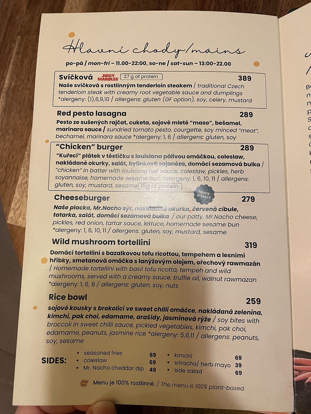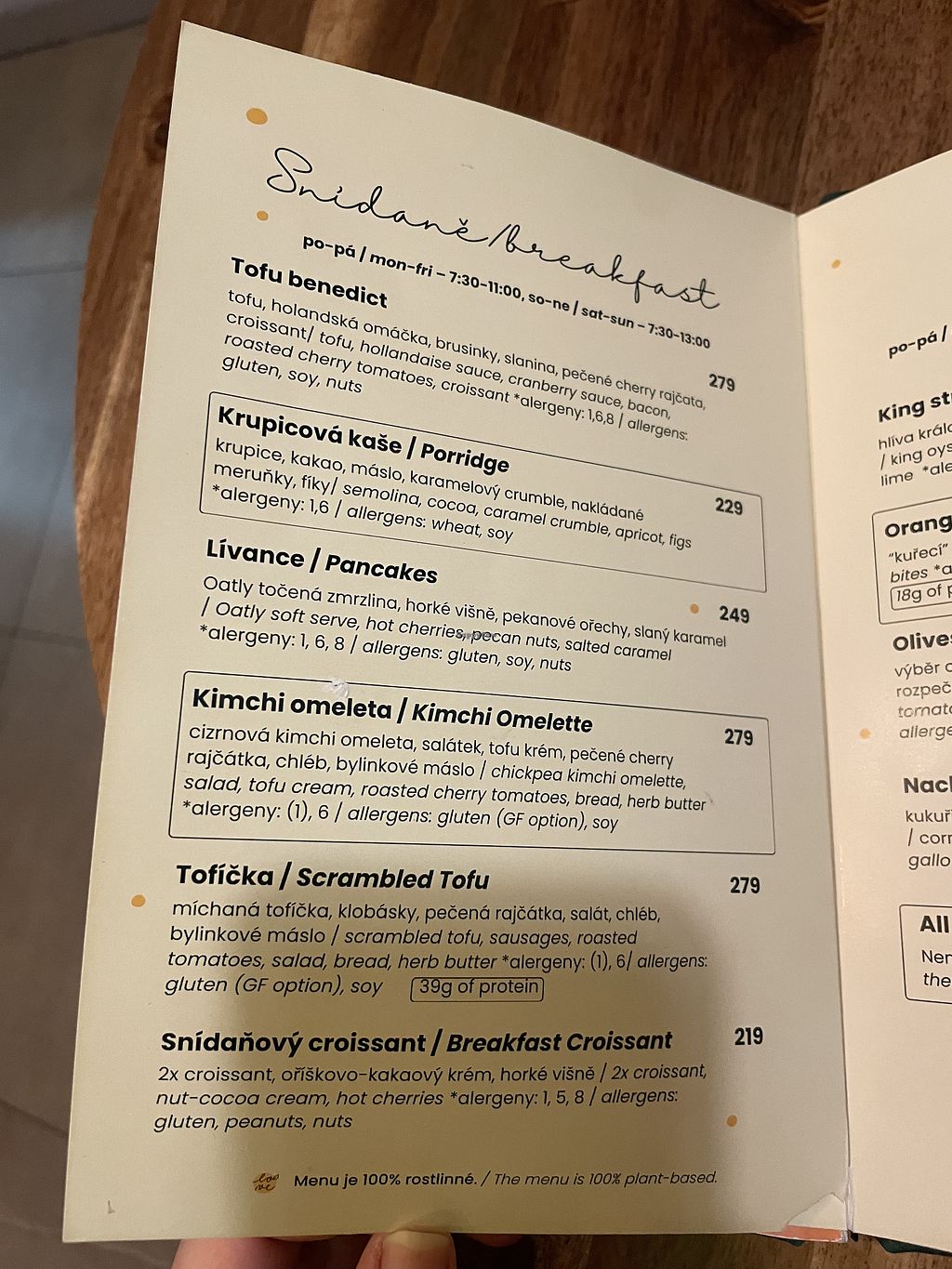 We had the seabuckthorn juice, traditional Czech steak, rice bowl and miz reca cake plus a beer that we thought was Czech but actually came from Berlin 😅 everything was good. I liked that they left out multiple ingredients from the bowl, as I didn't like them. The place itself is nice with real plants and clean.