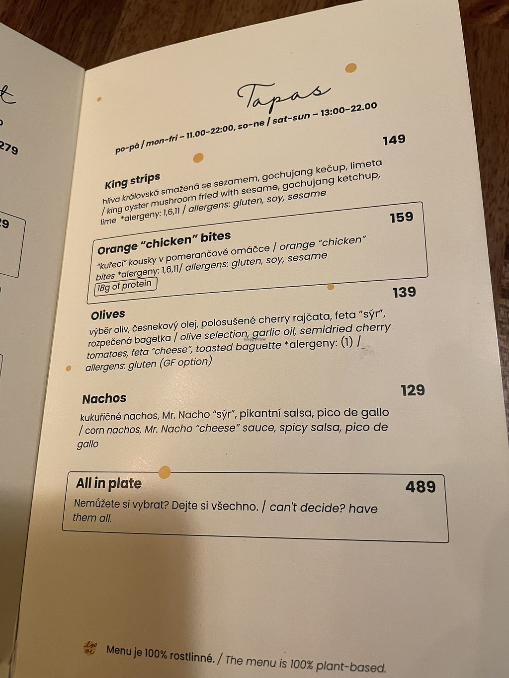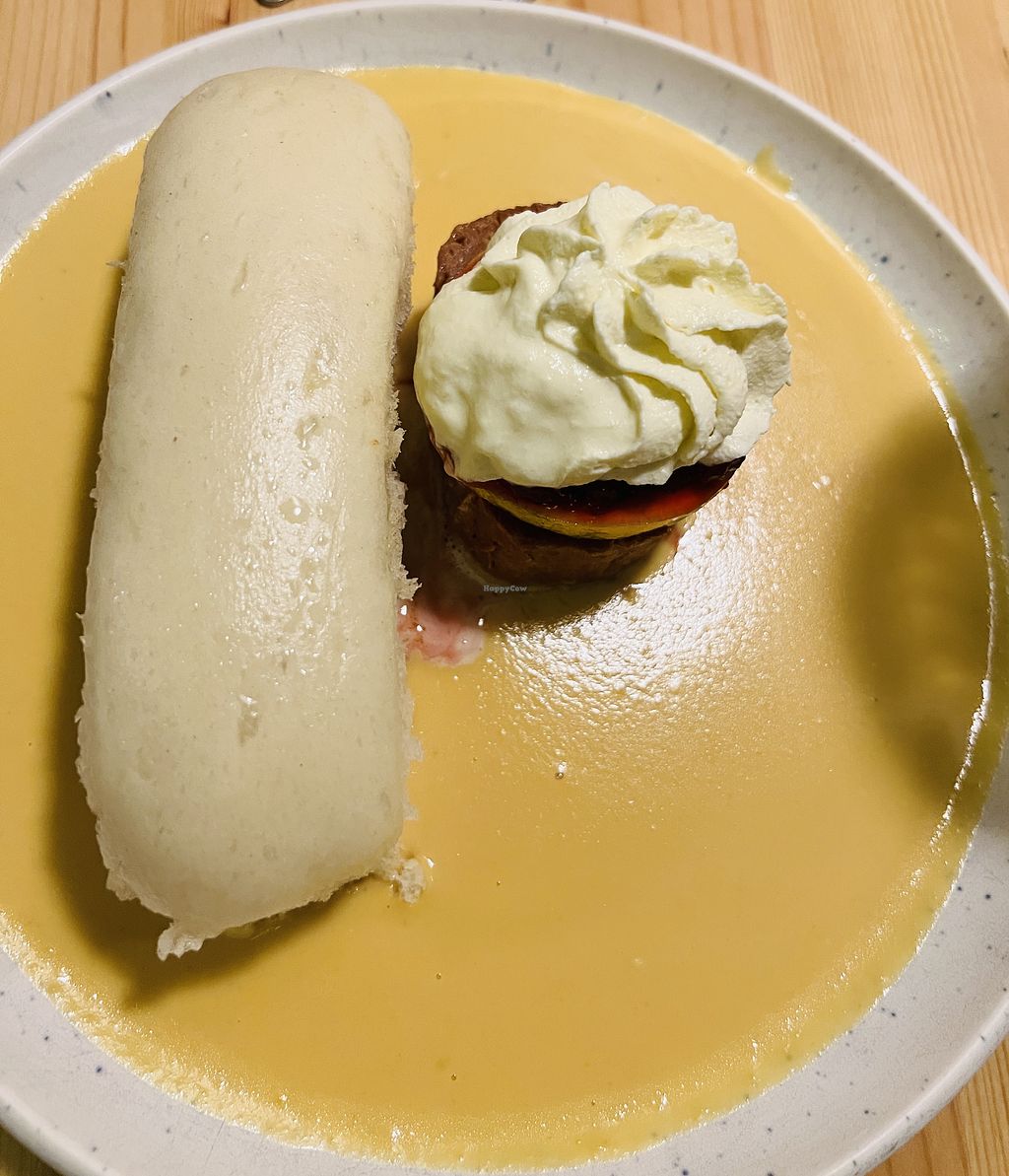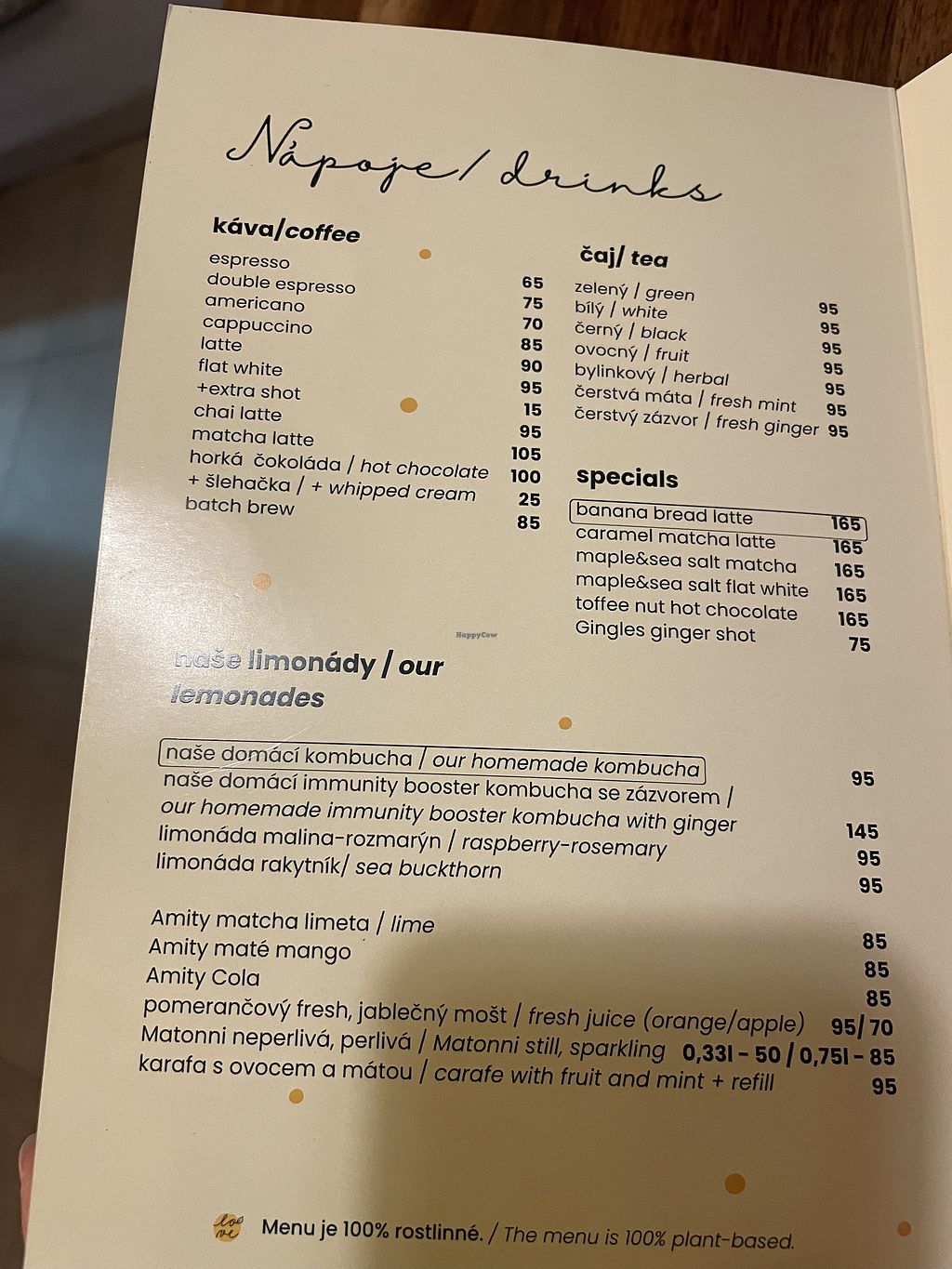 The food was incredibly tasty; we tried the Czech Christmas dinner ("fish" and potato salad) and the vegan steak served with Czech dumpling and a vegetable gravy, which is also a traditional Czech dish. They were both delicious and very satisfactory in terms of portion size. We also had a cup of coffee (cappuccino) and chocolate milk, both of which were well prepared and delicious. A great plant-based restaurant overall! I would highly recommend!
