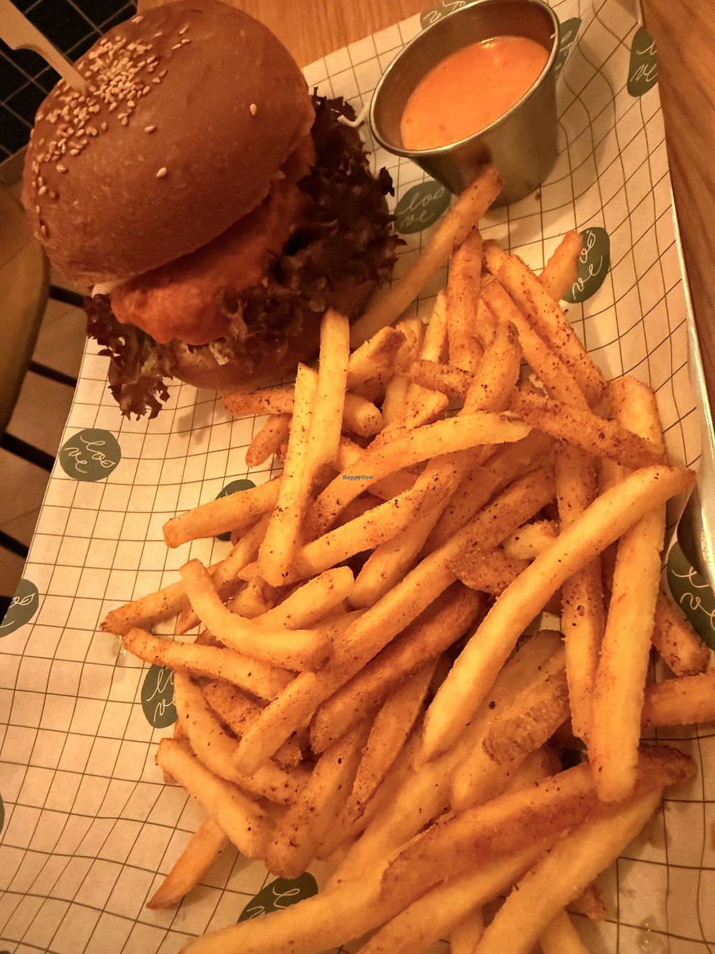 Unfortunately, I didn't have the chance to eat here as the place was packed and I was told that I couldn't be served without a reservation. As my hotel was just across the street, I opted for takeout and got the "chicken" burger with fries. The burger was pretty nice, nothing too special though. I like the fact that it was not Beyond meat but a more unique approach. The fries were huge and pretty good? Crunchy on the outside, soft on the inside. But: they were coated in spices and crumbs - I liked it and it made them extra crunchy, but I suppose it's not everyone's taste.