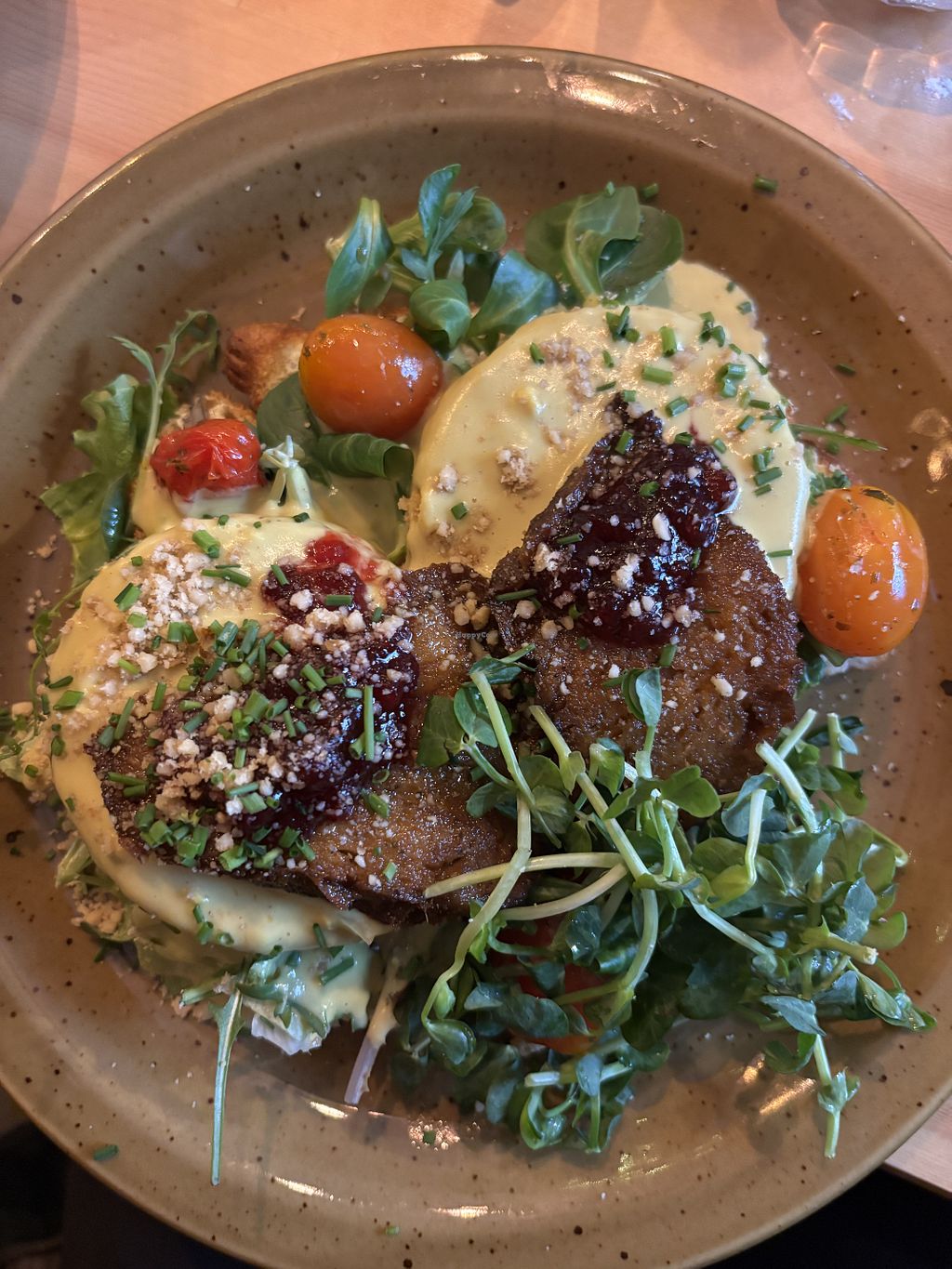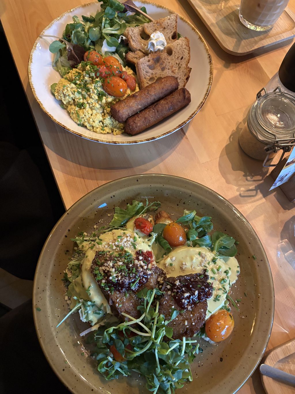 went here on our last day and shared the “tofu benedict” and “tofu scramble”. Food and drinks came quickly and the staff here is very friendly. The tofu benedicy really is something special and was a cool experience, as I’ve never eaten eggs benedict I can’t compare but it truly was delicious and put together so thoughtfully. The tofu scrambled was plated with sausages, that were so flavorful and really pulled the whole plate together.
