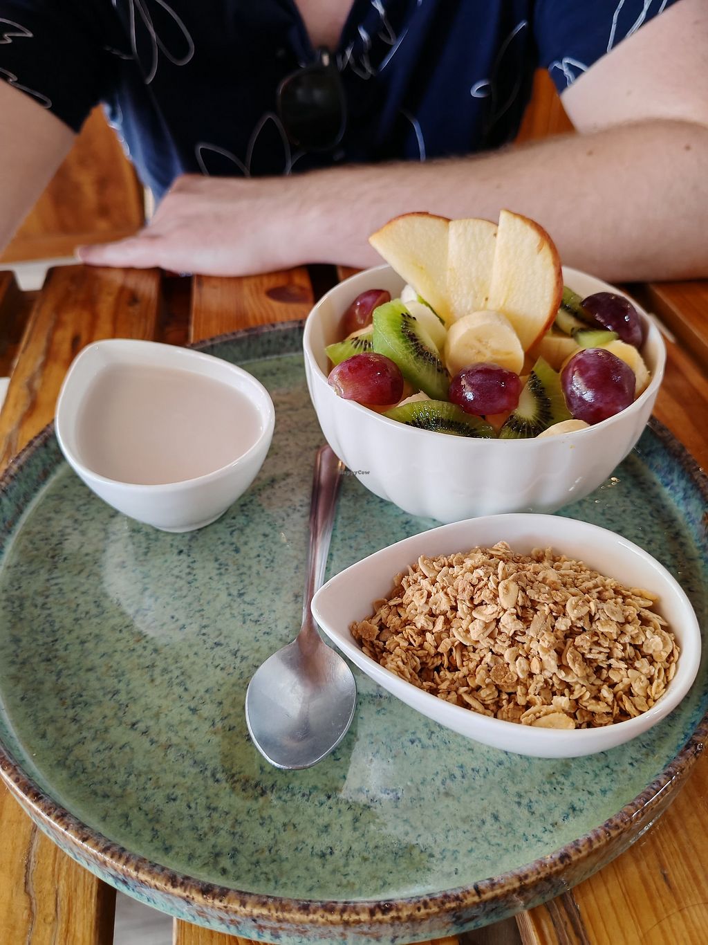 Granola and fruit with almond milk instead of yoghurt