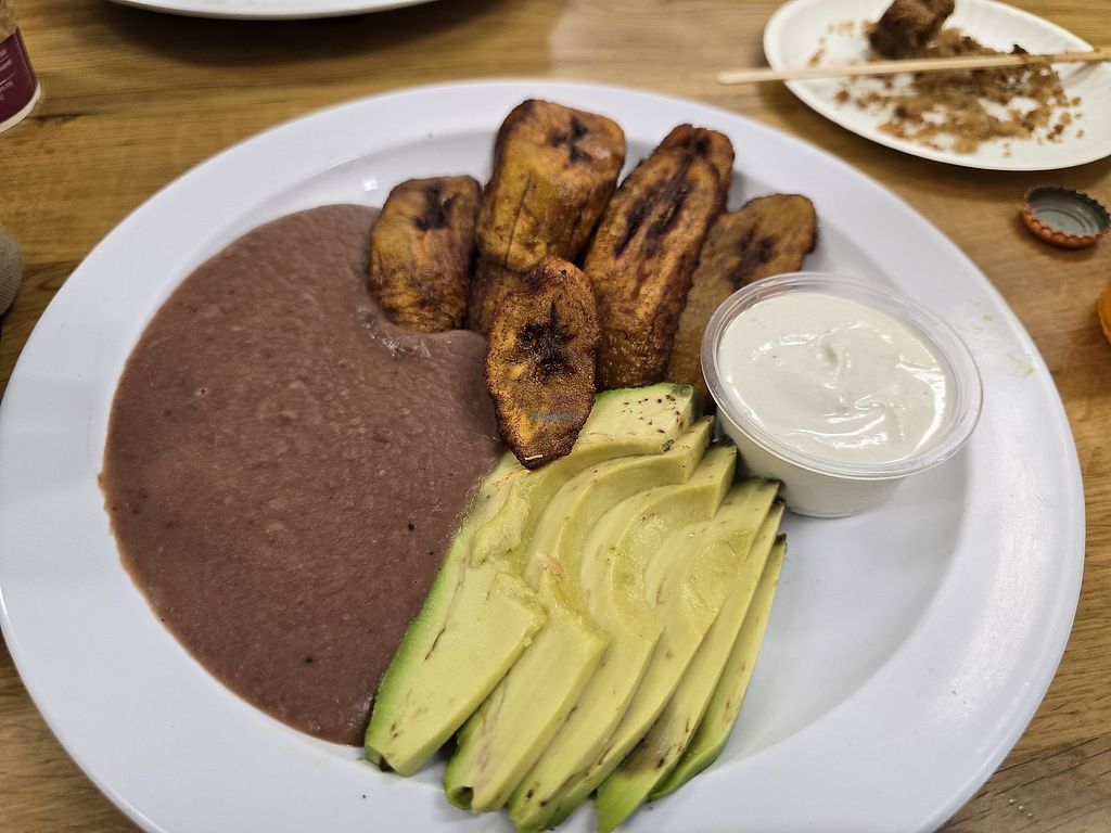 3 vegan torta options. i tried the one with beans, avocado, jalapeño and “crema” - there’s also vegan turkey and vegan provolone options. 3 leches cake was incredible. there’s a vegan breakfast menu served until 12pm with a fried plantain plate, breakfast burritos, and fried elote tamales.