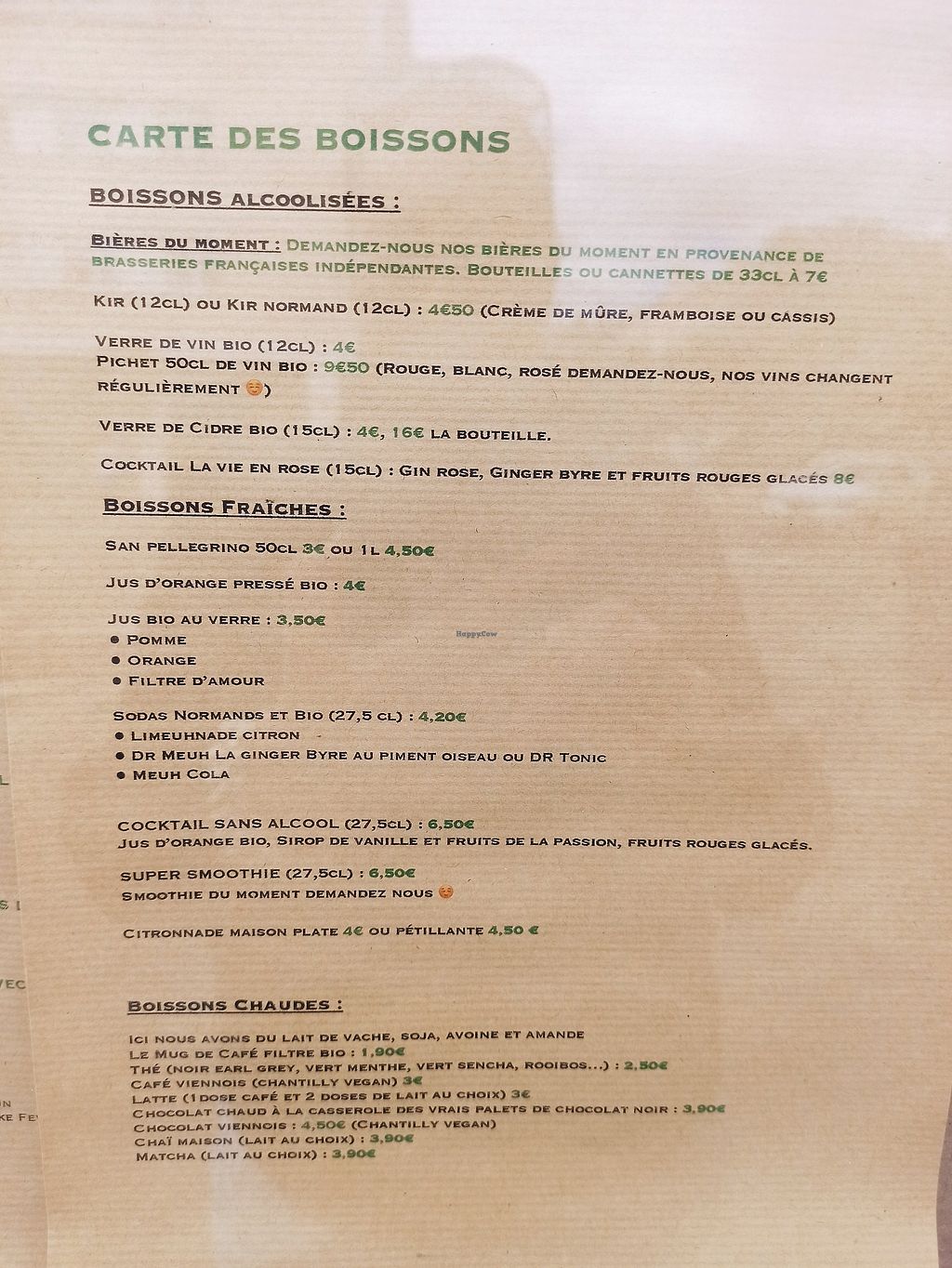 Alcools de la région et boissons soft, beaucoup de bio. Bonne carte de bières locales et bio.