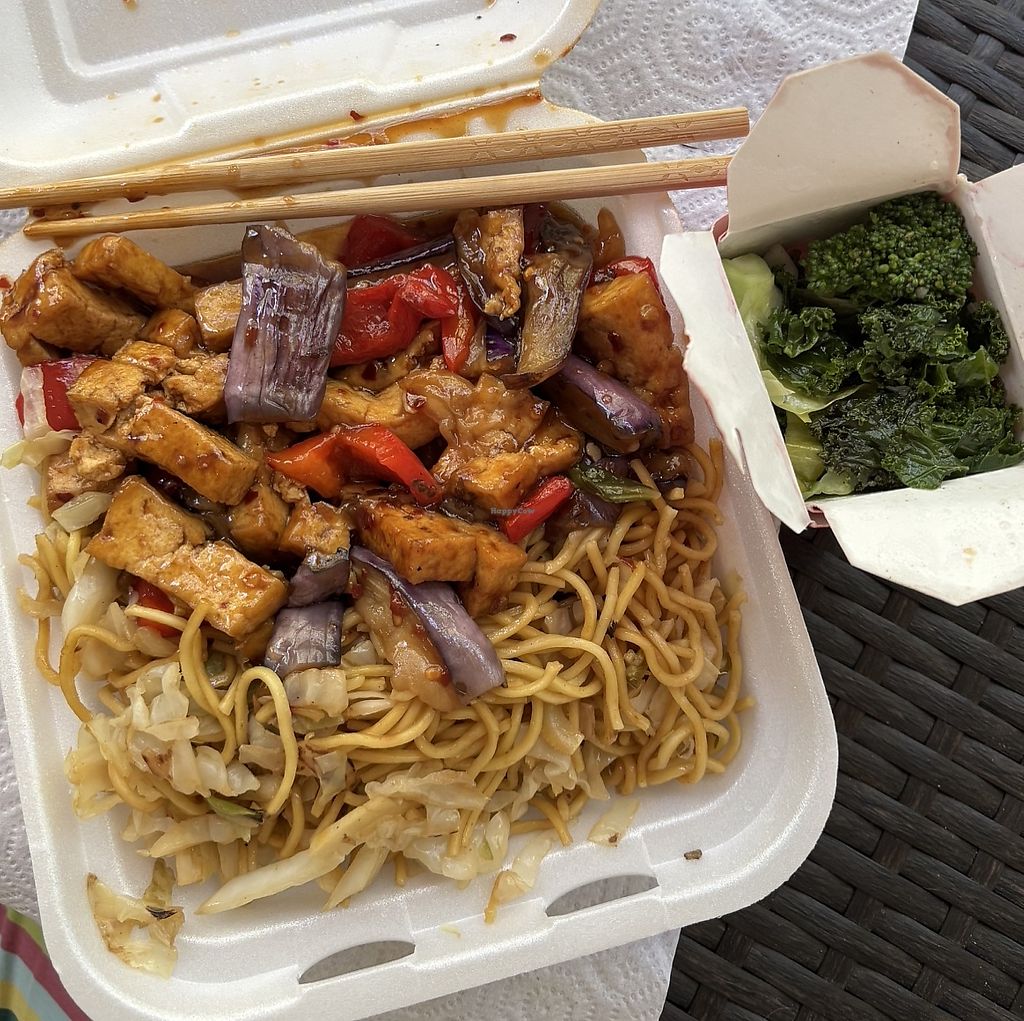 Serves meat, vegan options available. Nationwide fast food chain cooking up wok-fried American-style Chinese food. Here vegans can have chow mein, vegetable spring rolls, steamed vegetables, white rice, eggplant tofu, and a side of 'super greens.' Open Mon-Sun 10:00am-10:30pm.