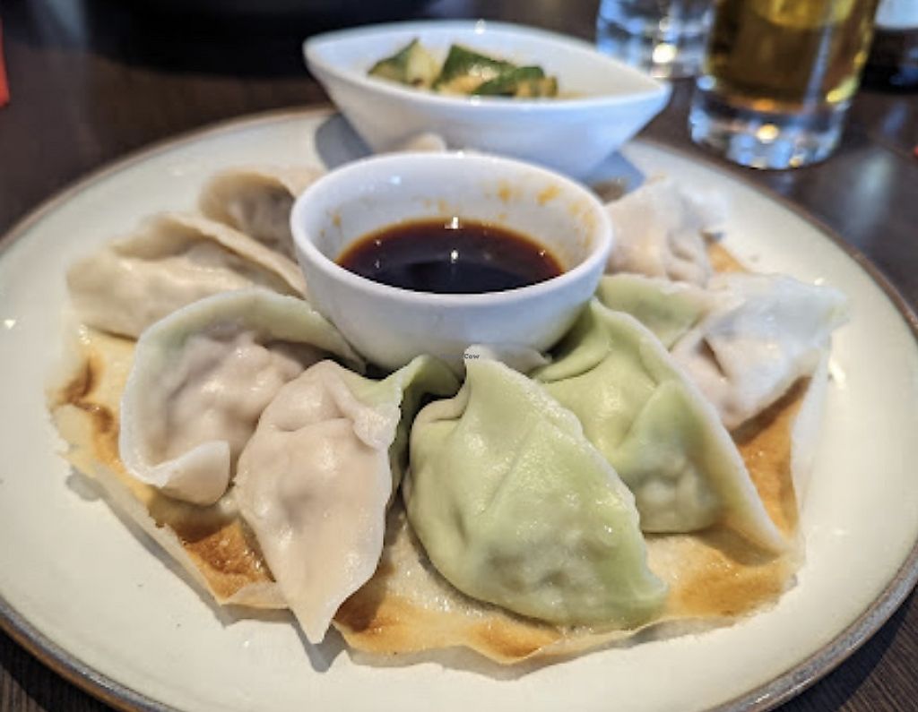You can choose dumplings with vegan filling. I loved them! The soysauce was delicious. They also have vegan sushi that’s lovely, just tell them that you want it vegan and they will fix it 🌱