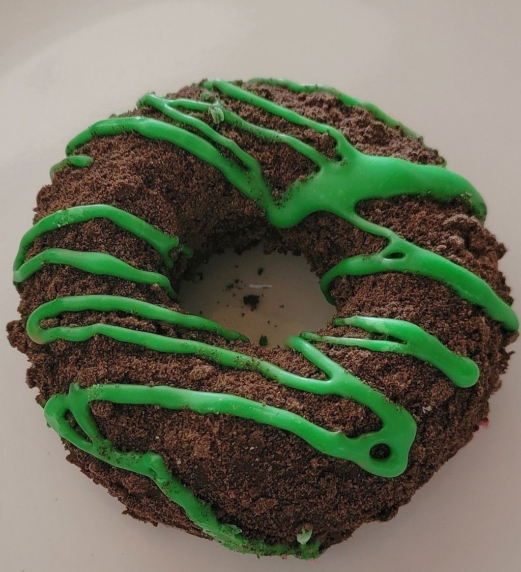 I went vegan about 6 years ago and was never able to find any donuts near me, so I was amazed when my freshmen dorm gave us donuts for reading day! Ever since then, I have loved these donuts and continued to visit. I do not remember what donuts I've tried in the past, but today my roommate got me a Girl Scout Thin Mint one because I kept talking about my plans to go and it was soooo good, especially because I have always been a thin mints lover :D