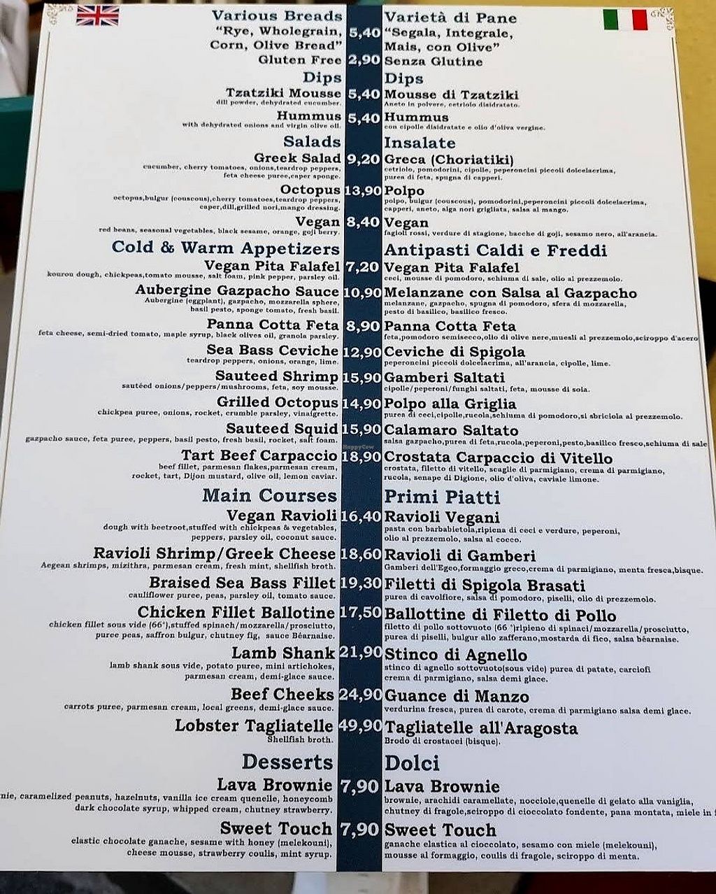 Was close to where I was staying to went one night, food was tasty but options limited. I got hummus and bread which was great hummus, and the ravioli, but they initially brought me the shrimp ravioli, which thankfully smelled so strong, it was obvious haha, so make sure you emphasise the vegan version! I also got the falafel wrap t9 take away as a packed lunch for the next day, they disassembled it for me, but didn't add the sauce or salad (so it wouldn't go soggy) and still charged me full price... overall though, its nice here, quite fancy, so that was a nice change, but had much better food in Rhodes.