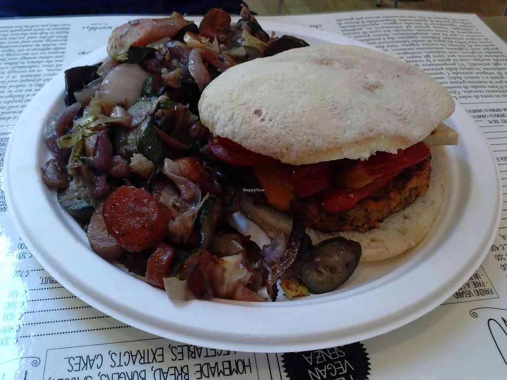 I had the "Panino + contorno + dolce" (burger, veggie side dish, and dessert) and was very pleased with everything i ate — and found it to be good value at 10 euros. There are several options for the veggie burger that allow you to tailor it to your tastes. The strawberry cake was delicious.