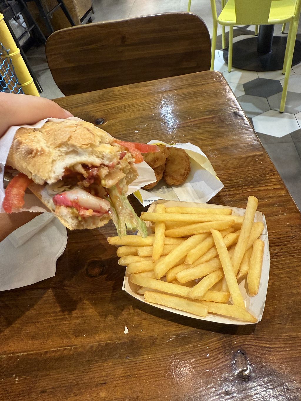 Ordered a baguette with salad and vegan nuggets with fries and a drink! Nice fast food place inside the shopping mall in the food hall on the top floor.