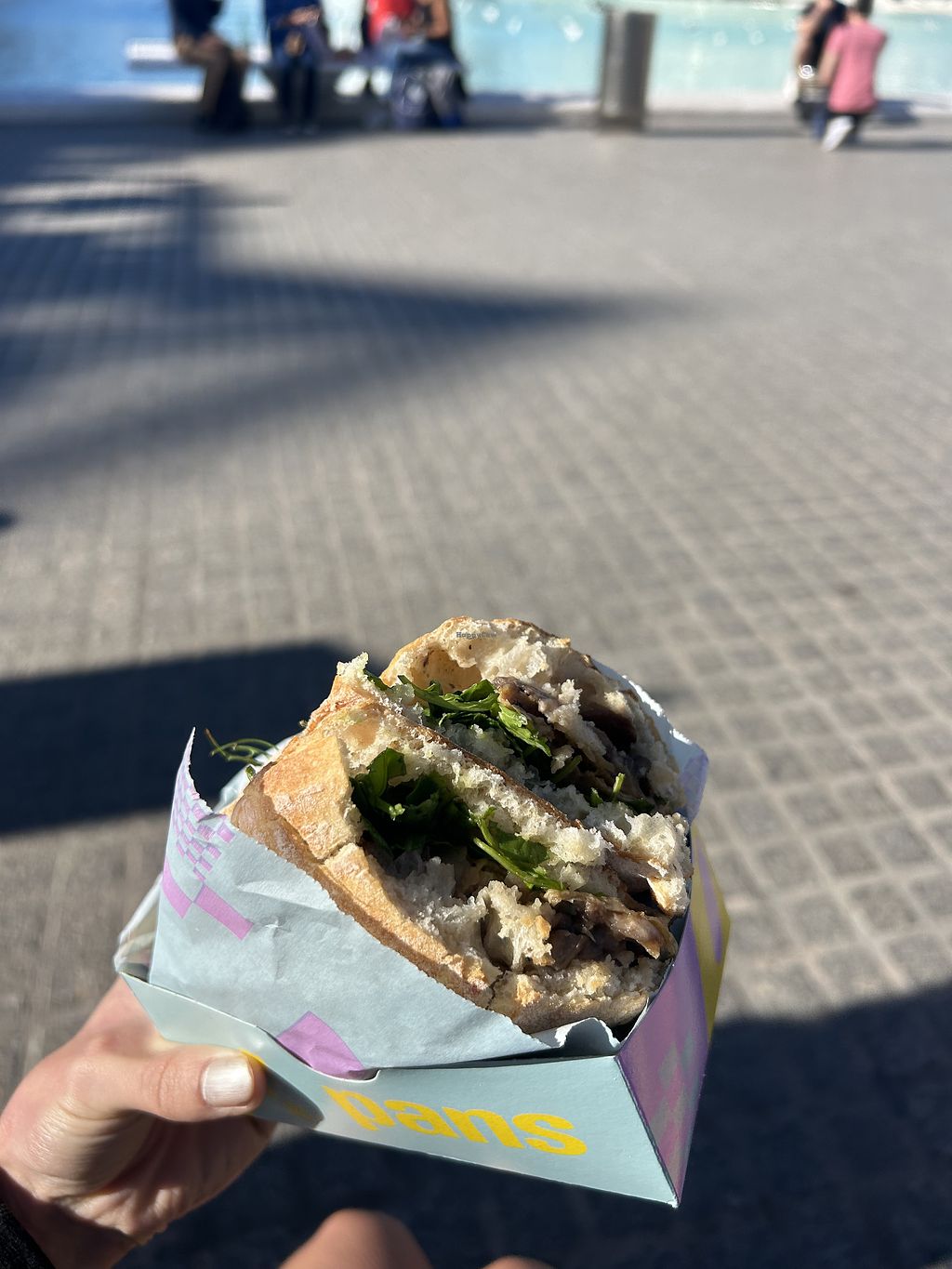 This is a Spanish Subway chain, but with many more vegan options. Even a salmon and a mozzarella with pesto one. You can choose of like eight sandwiches and salads, patatas bravas and heura nuggets.