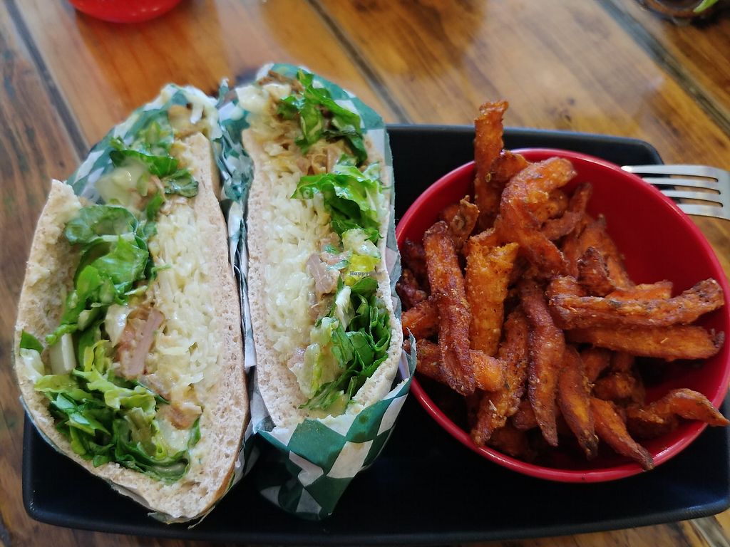 Schwarma : Not that impressed. The jackfruit didn't have a lot of flavor and everything tasted very picklely. The pita bread was superb. It was moist and tasted like it was made in house.