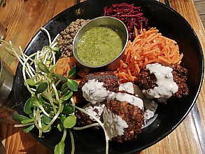 I've had a jackfruit pulled pork style bowl with super fresh ingredients and tzatziki, which was just amazing!