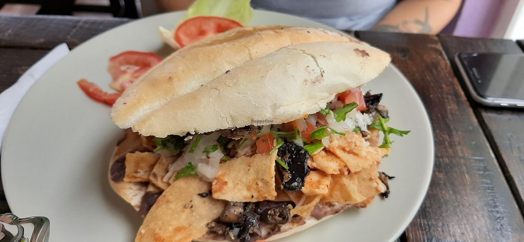 This place offers a ton of vegan and veggie options- basically chilaquiles y tortas with beans and veggies etc. Just keep in mind the V on the menu just means veggie so you need to tell them if you want it vegan. This place is out of the main center but well worth the trip! They’re also pet friendly and super kind to my doggo. Will be back! 🤍
