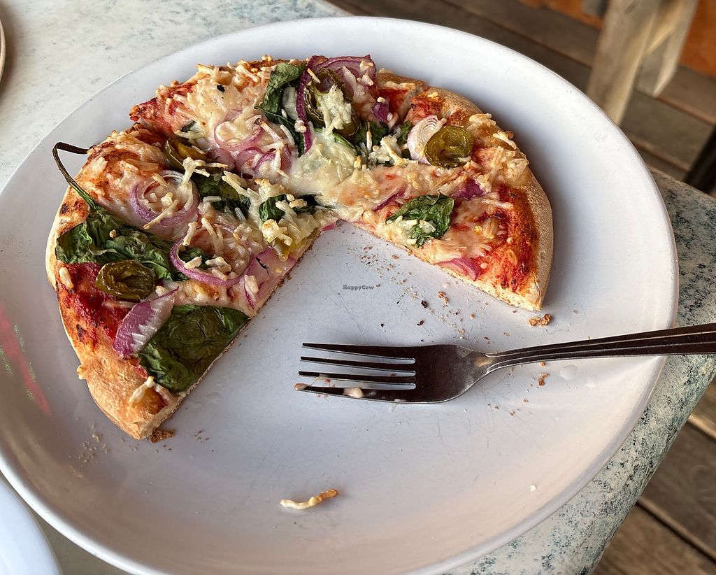 Had a BYO personal pizza with vegan cheese, spinach, red onions, and jalapeños. Delicious! My Omni husband ordered the “Rancher” pizza, and he loved it as well. Would give this 5 stars if I could, Stanley is a tiny town to offer vegan cheese for pizza. I’ll take it!