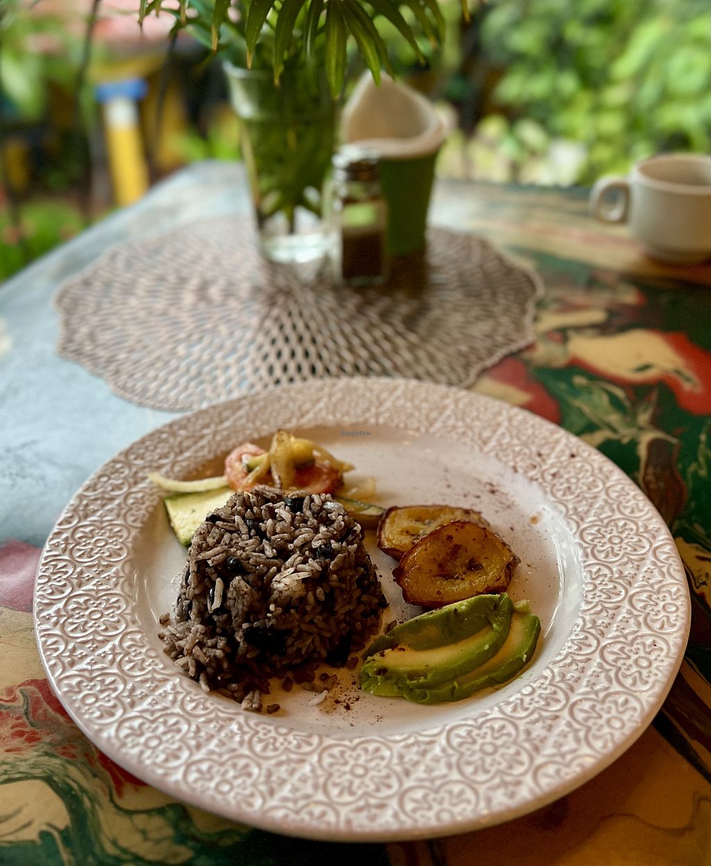 They're weren't many vegan options. Tthey have a separate menu selection ONLY if you are staying at hotel and it did look like there were a couple of options but I could not order those as I was just visiting the restaurant . I got the teriyaki veggies and rice and it was tasty enough but nothing special. The service was decent and there's a couple of iguanas that hang around the restaurant which are fun to observe.