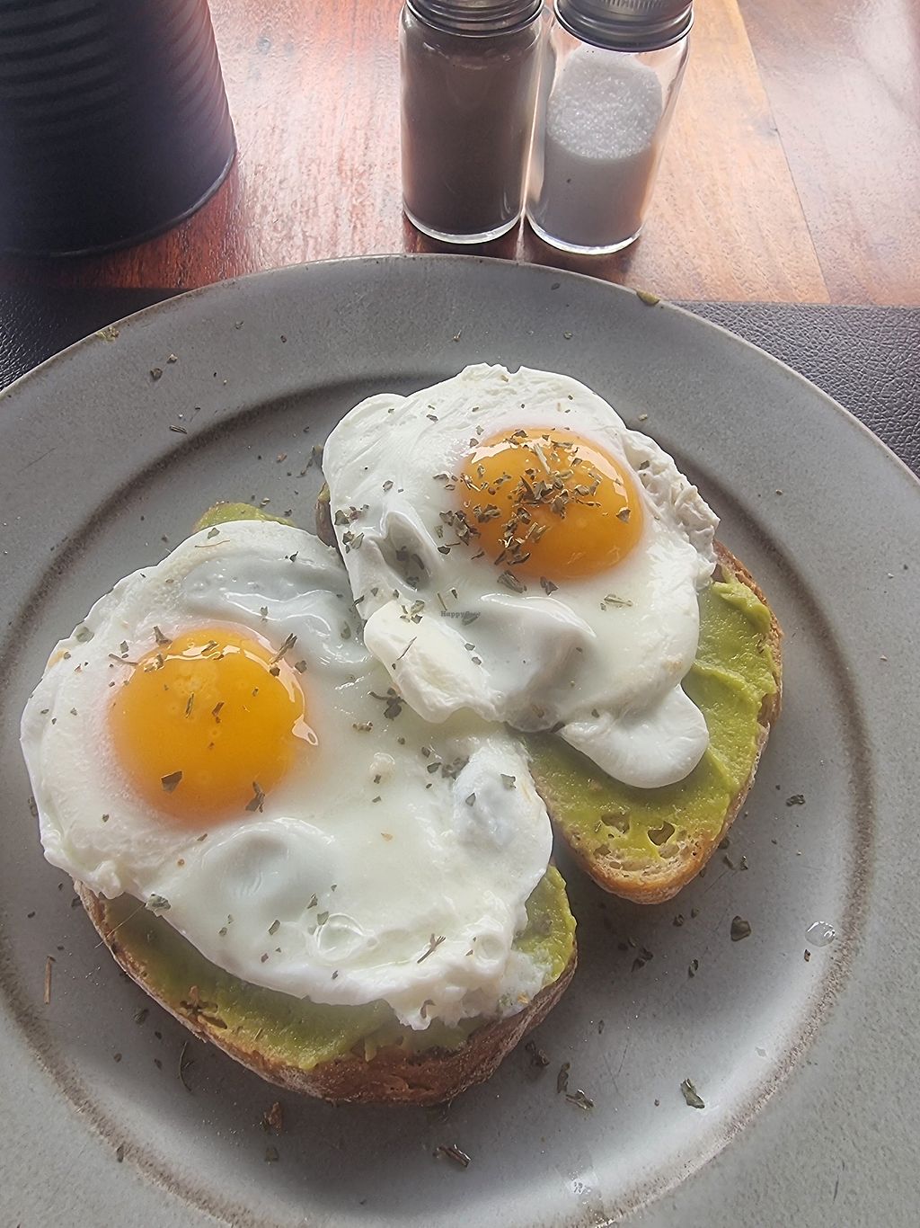 Avo toast i have started eating eggs after many many years strictly vegan but there's a statement on the menu below saying you can remove the egg.