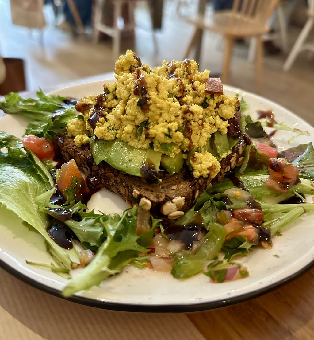 Read moreWe ordered the soup special of the day, creamy lentil with carrots and the avocado toast, topped with tofu scramble, bacon bits and drizzled with balsamic. The soup was lacking flavor to me, one dimensional. The bowl was big and just too much of something unremarkable. Maybe a drizzle of something acidic, like lemon juice would have given it a punch. A cup would have been better. The avocado toast was good, and on the small side. Interior is charming.