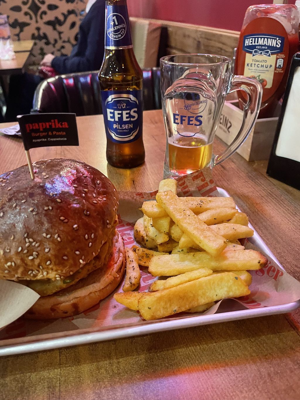 I've really struggled with vegan food in Cappadocia so finding Paprika was a welcome change! Nothing is labeled vegan on the menu but the burger is suitable when ordered without cheese, and it was really tasty. I also had the hummus plate, a soft drink and a cocktail, all of which came to about £22. Our server was so friendly and charming - I'd definitely be back if I wasn't leaving tomorrow.