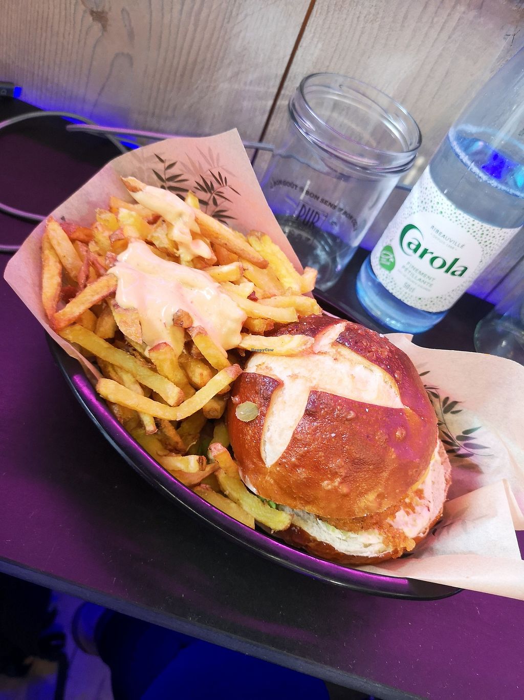 Un chouia cher quand même. Quasi 15 euros pour 5 nuggets, frites et une boisson ça pique un peu mais un détail quand on se fait plaiz. Ah, et le cookie bretzel troooop bon! Ils vendent les barres love raw aussi 💜 Bref, allez-y si vous aimez la bonne junk food vegan