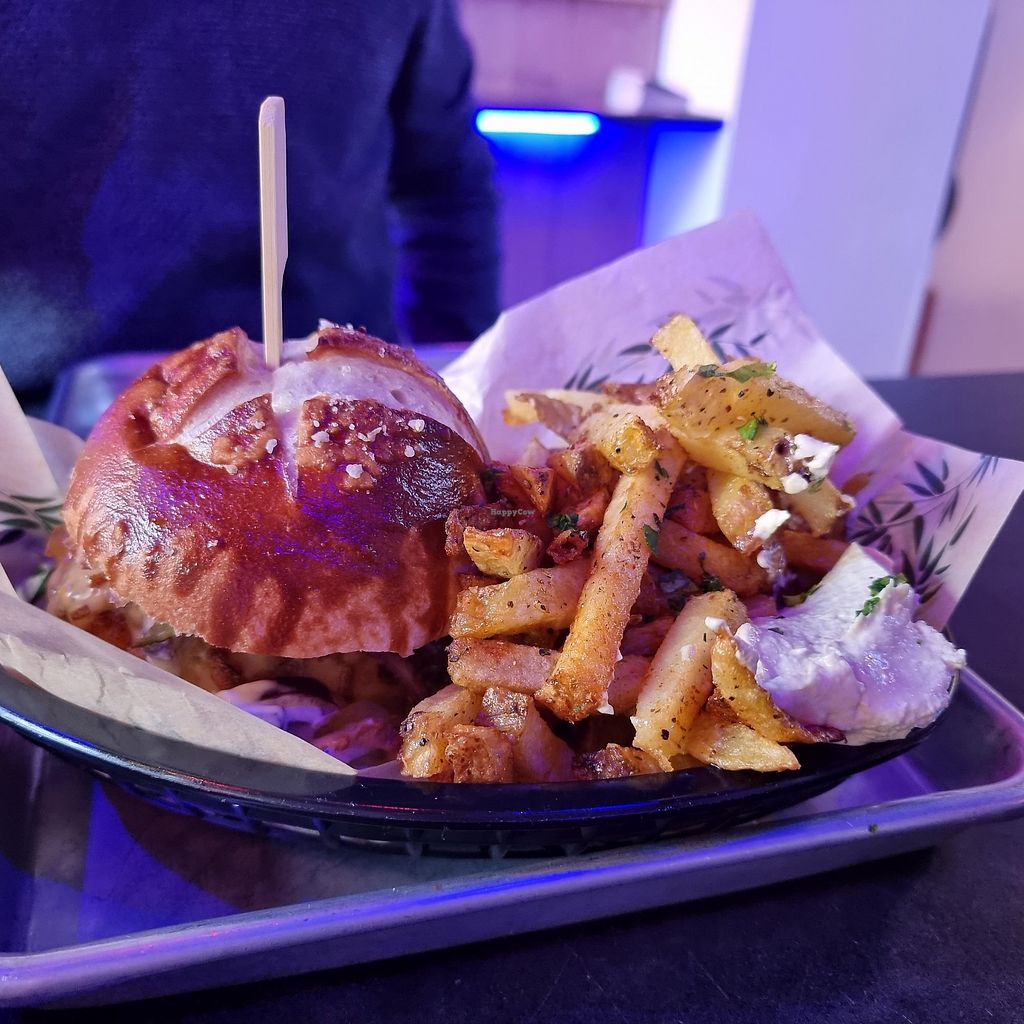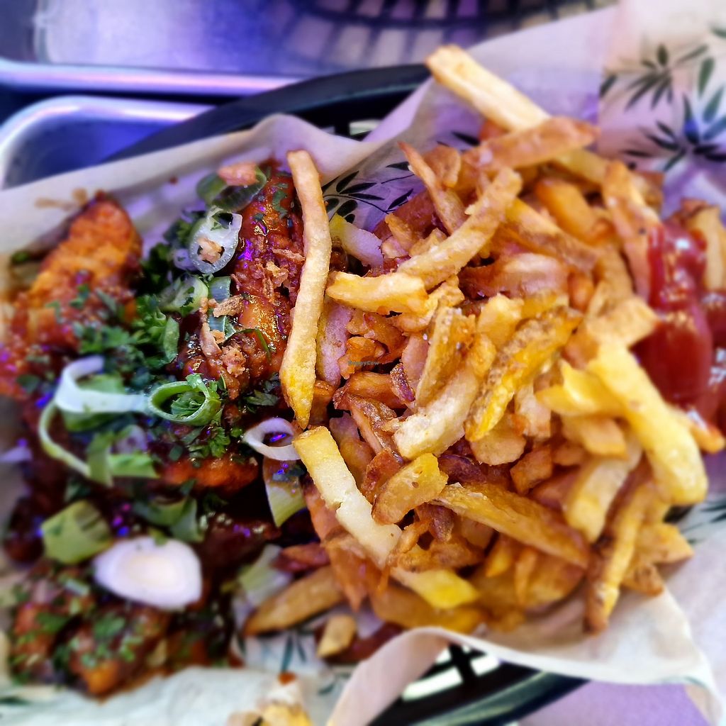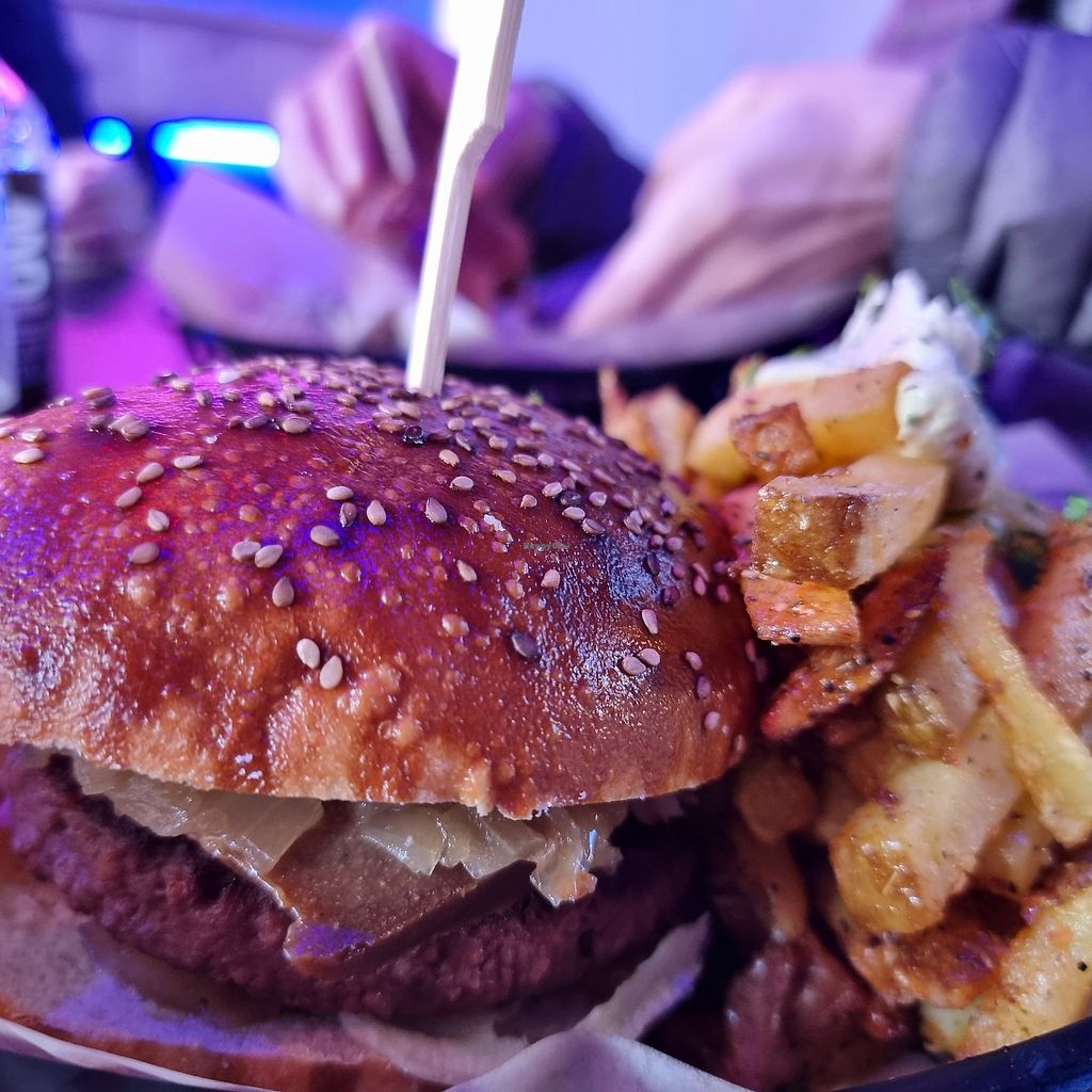 All vegan diner offering a variety of items such as burgers, kebabs, pulled pork, fries, mushroom-based chicken wings, waffles and more. Reported closed August 2023.