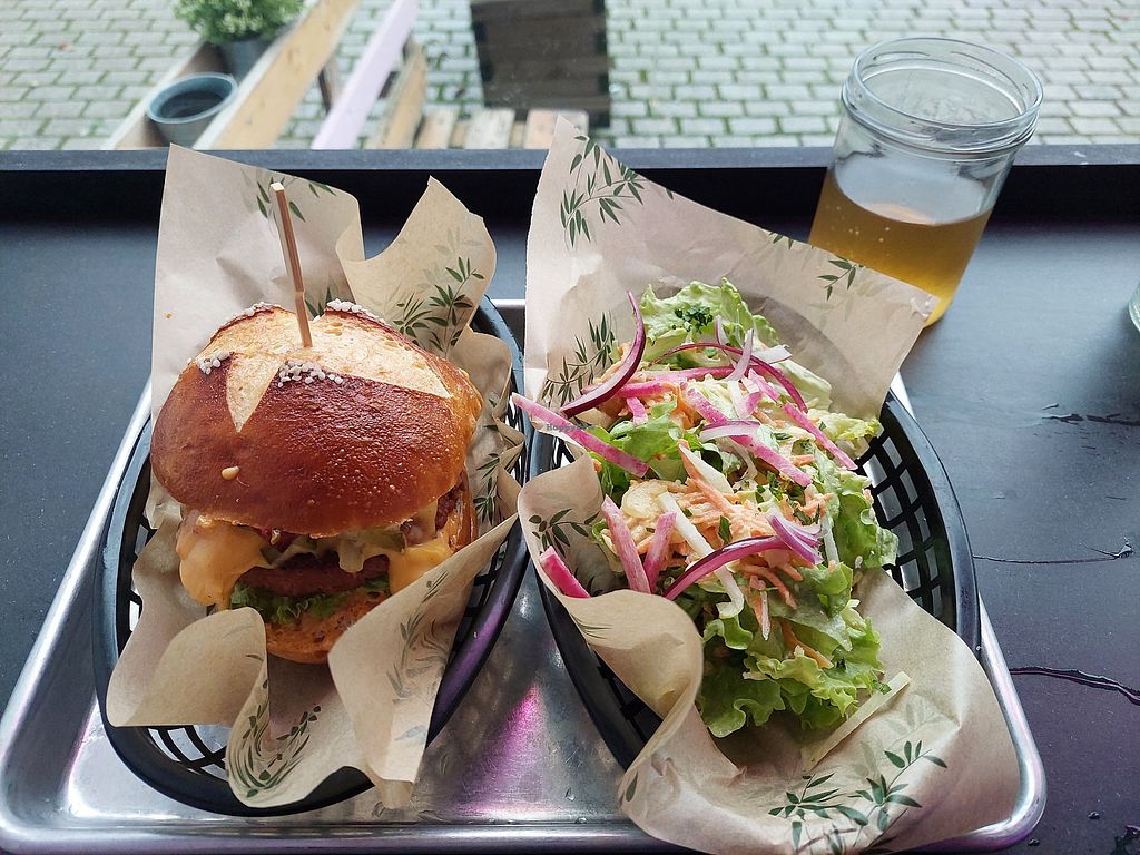 We ordered the smoky and the chickenless burger and the Mac”no”cheese. The substitute patty on both the burgers did not only taste good it also felt as if we were eating real meat. The burgers were all in all really tasty and worth the price. The Mac”no”cheese were too. They were really filling and also in taste and looks they looked like real Mac n Cheese. The rest of the menu(at least from what I could see around the restaurant) looked also very promising. #Veganuary