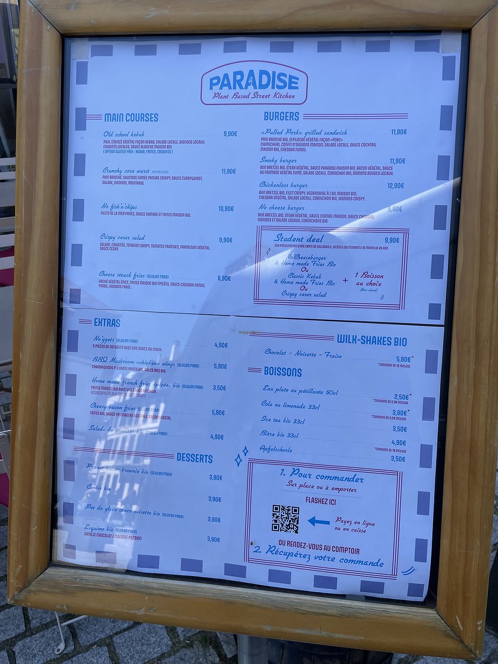 Read moreSimply great vegan fast food! They have a student deal with a delicious cheese burger (or kebab, which is also great), fries and a drink for less than 10€.