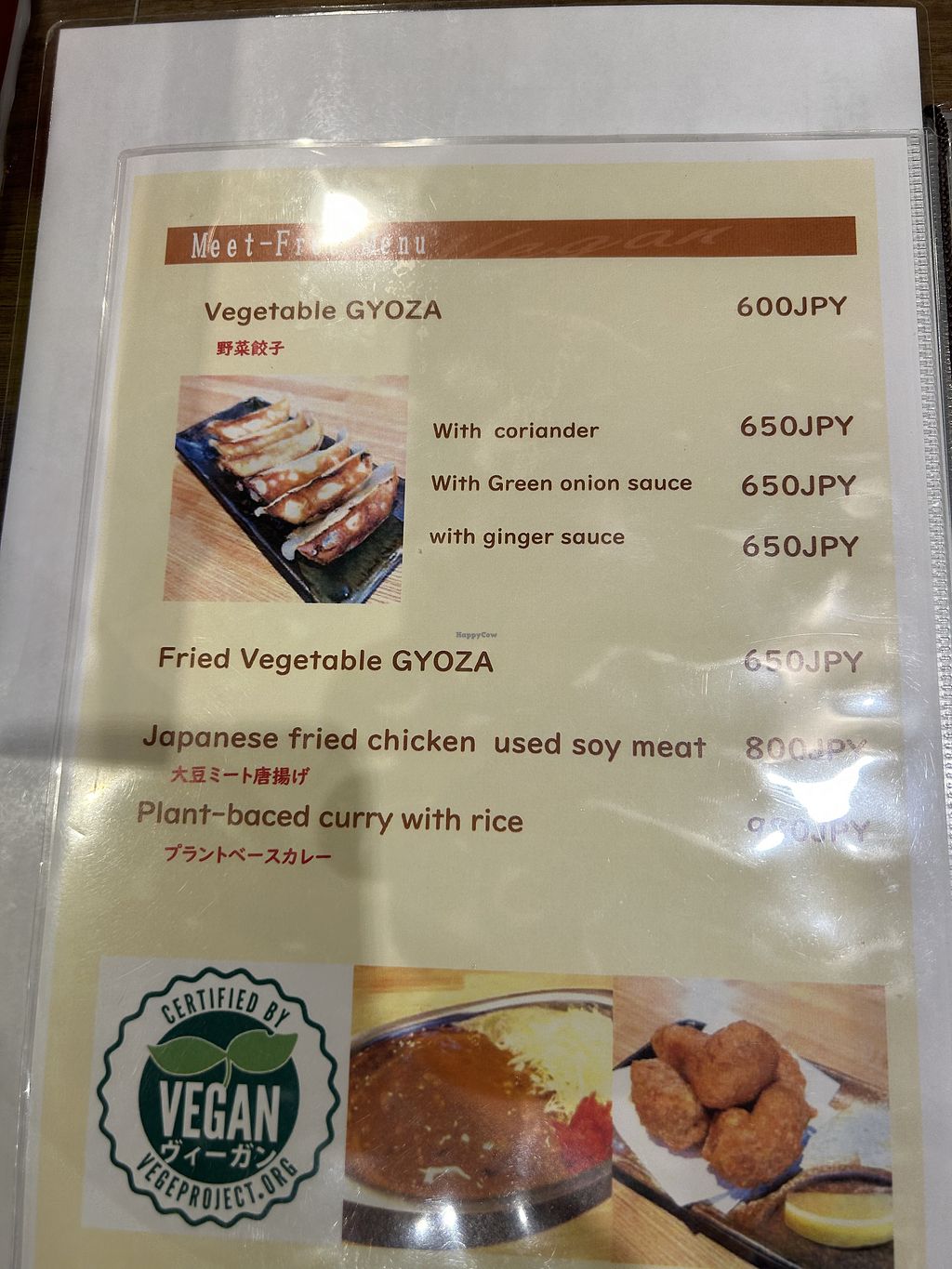 Great Vegan gyoza option. Certified Vegan by what looks like a Japanese org. Staff speaks english so easy to have a conversation. Would definitely go back if I get a chance.