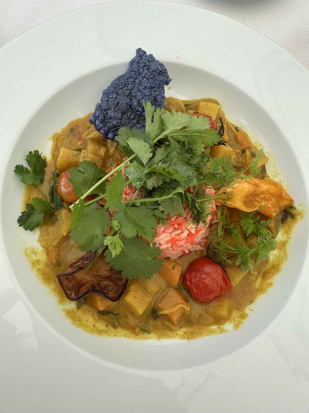 Lacto Ovo Non-veg Serves meat, vegan options available. Hotel restaurant offering a modest selection of vegan dishes, including Indian vegetable stew with basmati rice and falafel à la Mohamed. More