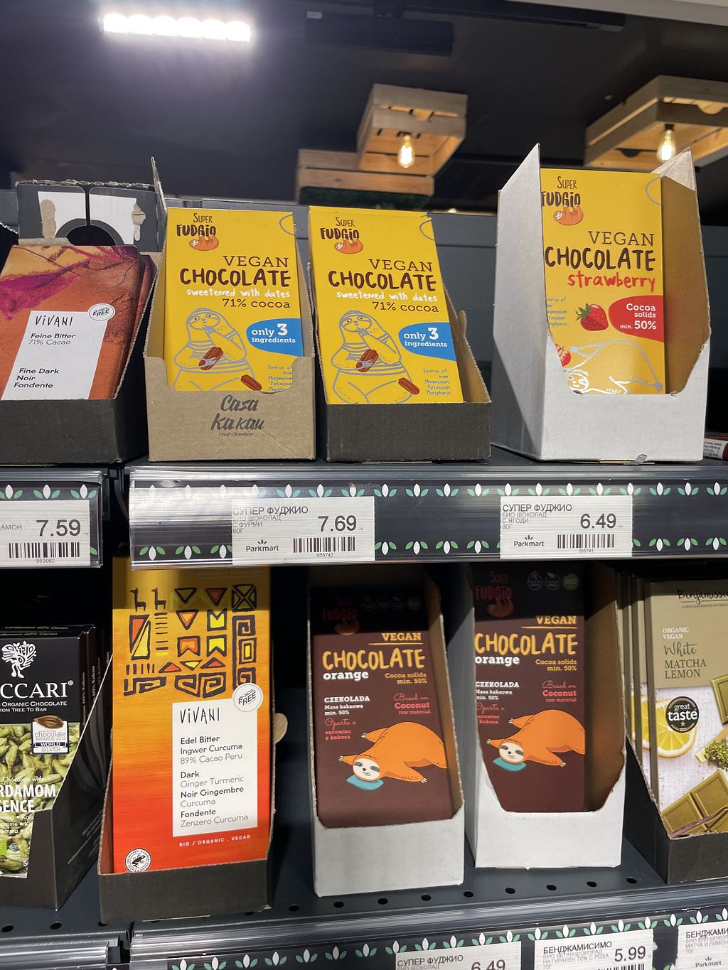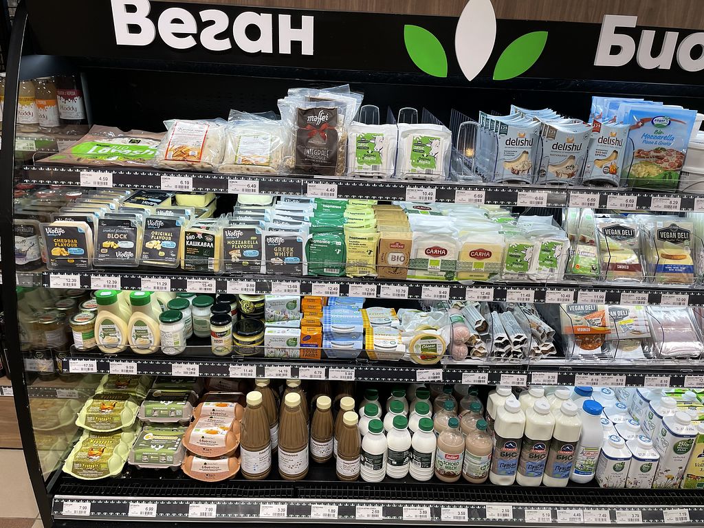 Located in the center of Sofia it’s perfect for a quick pit stop to fill up with provisions. They have a wide selection of frozen plant based meat and pizzas and plant based condiments, spreads, cheese and ham. Also a good verity of candies and snacks.