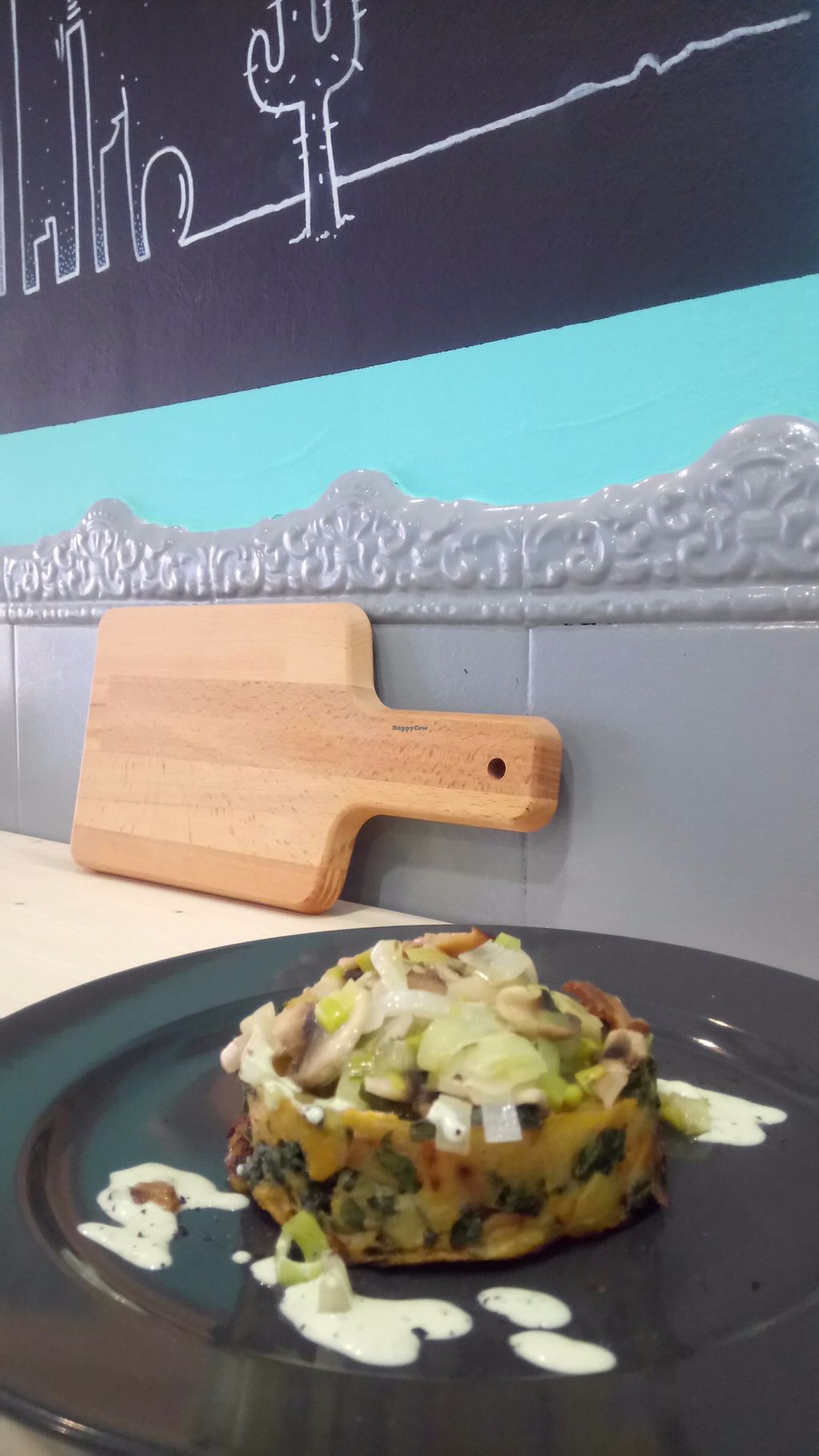 Trinxat de patatas, boniato y Kale con salteado de setas y ali olí vg.…