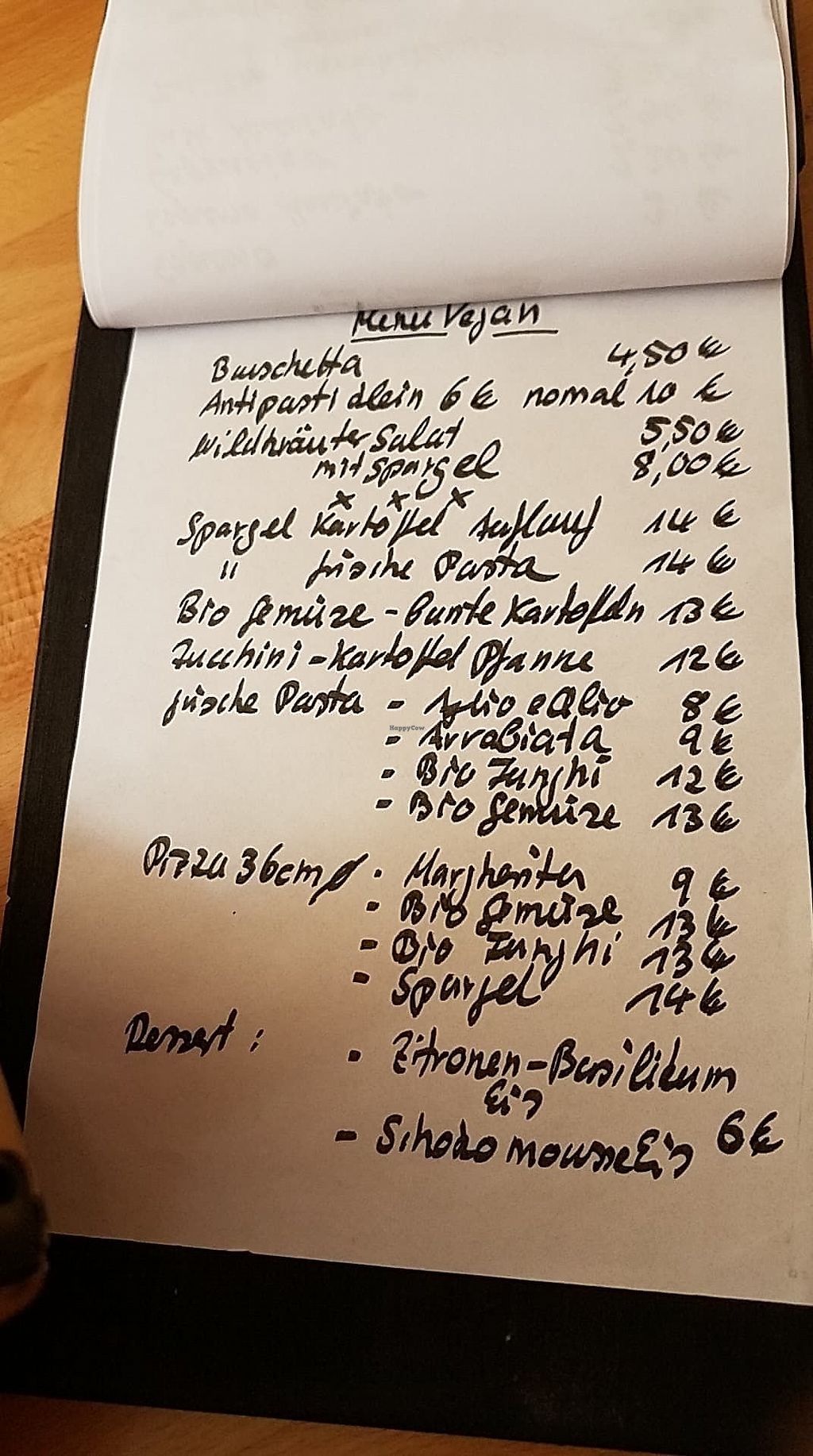 We followed the instructions and asked for the vegan menu and it was veggie and vegan. There were so many great options and the service was excellent. We will be going back the next night to try the pasta as the pizza was so delicious! So happy to find a great place near our hotel.