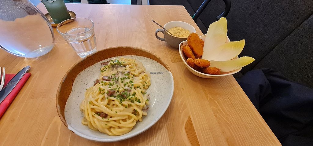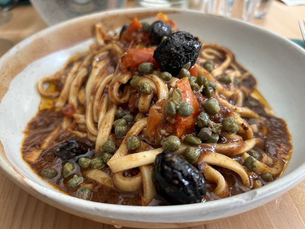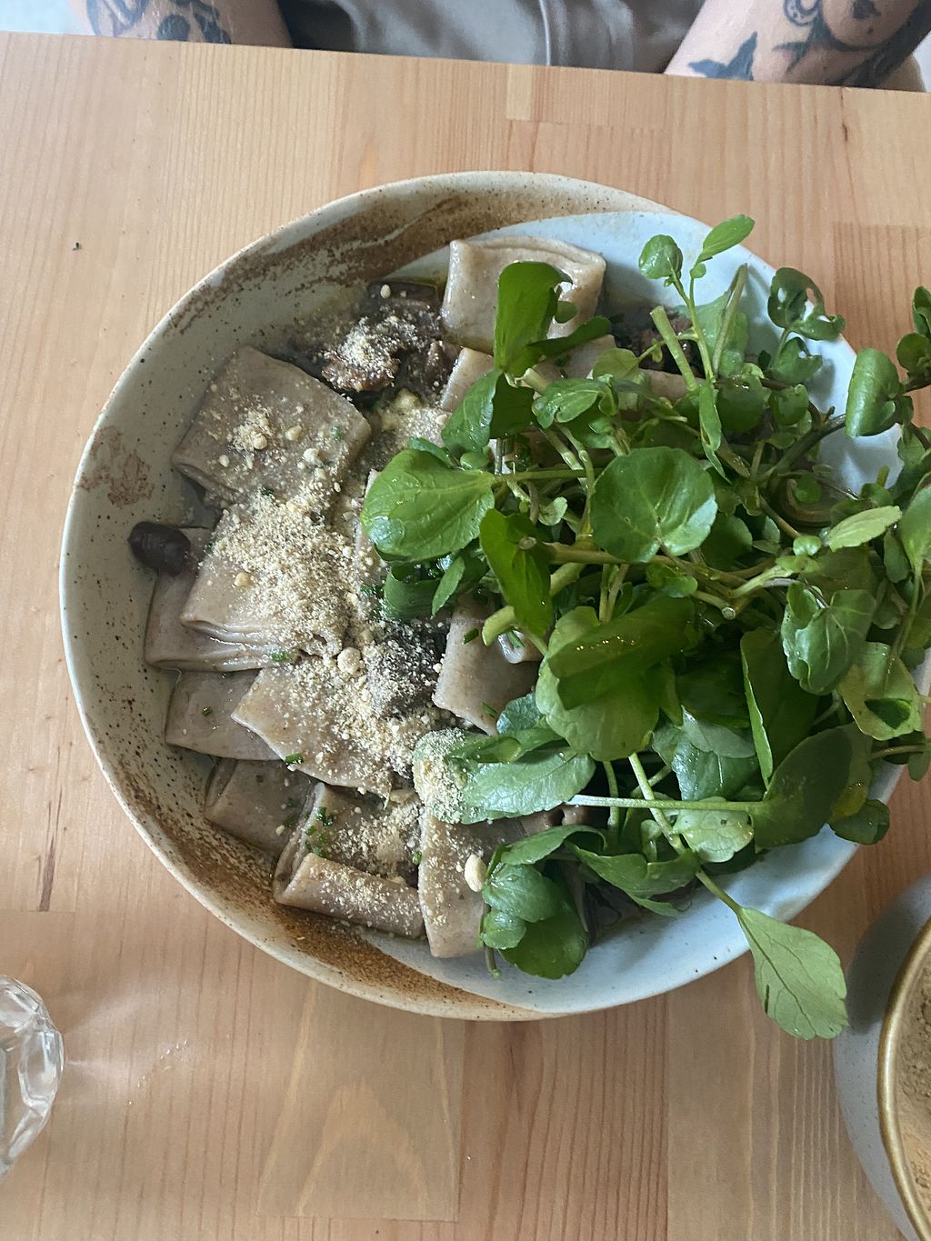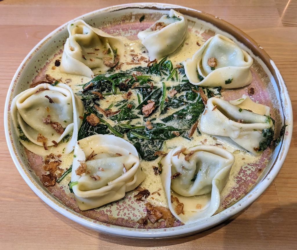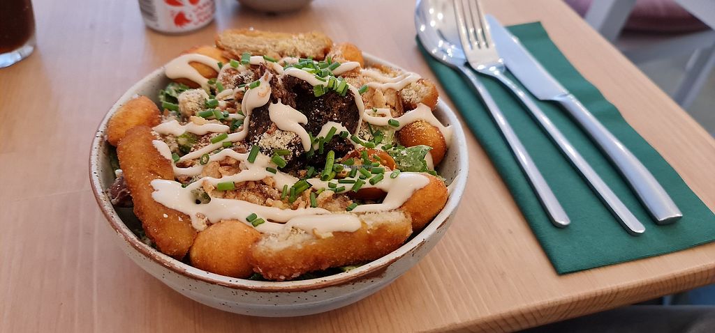 Deep fried Gnocci (bottom) Sourdough w/ tomatoes and garlic (top)