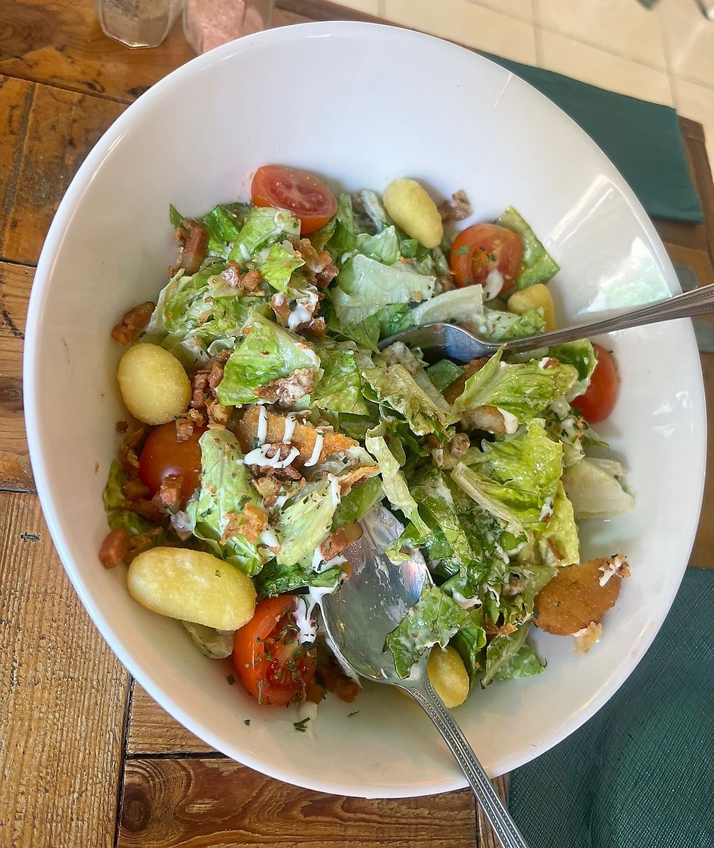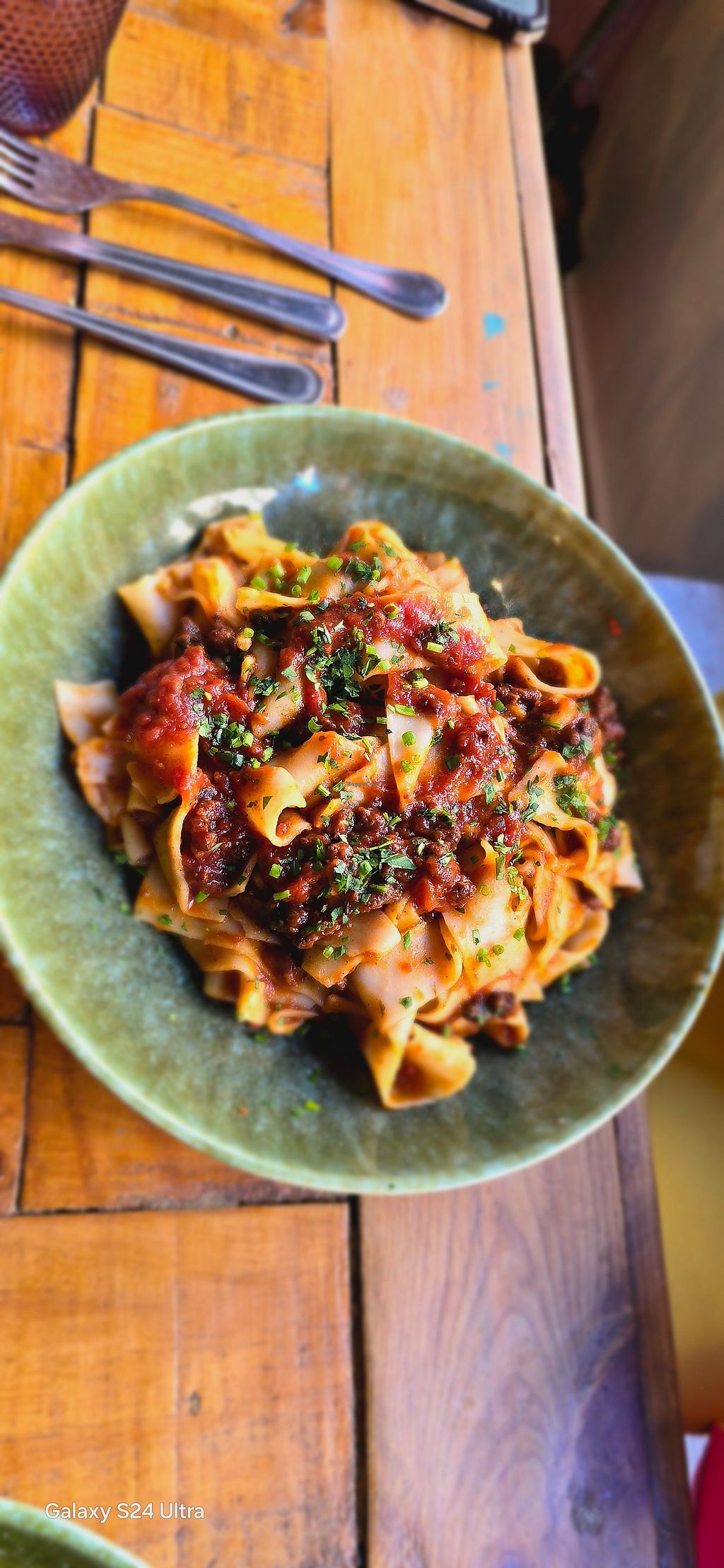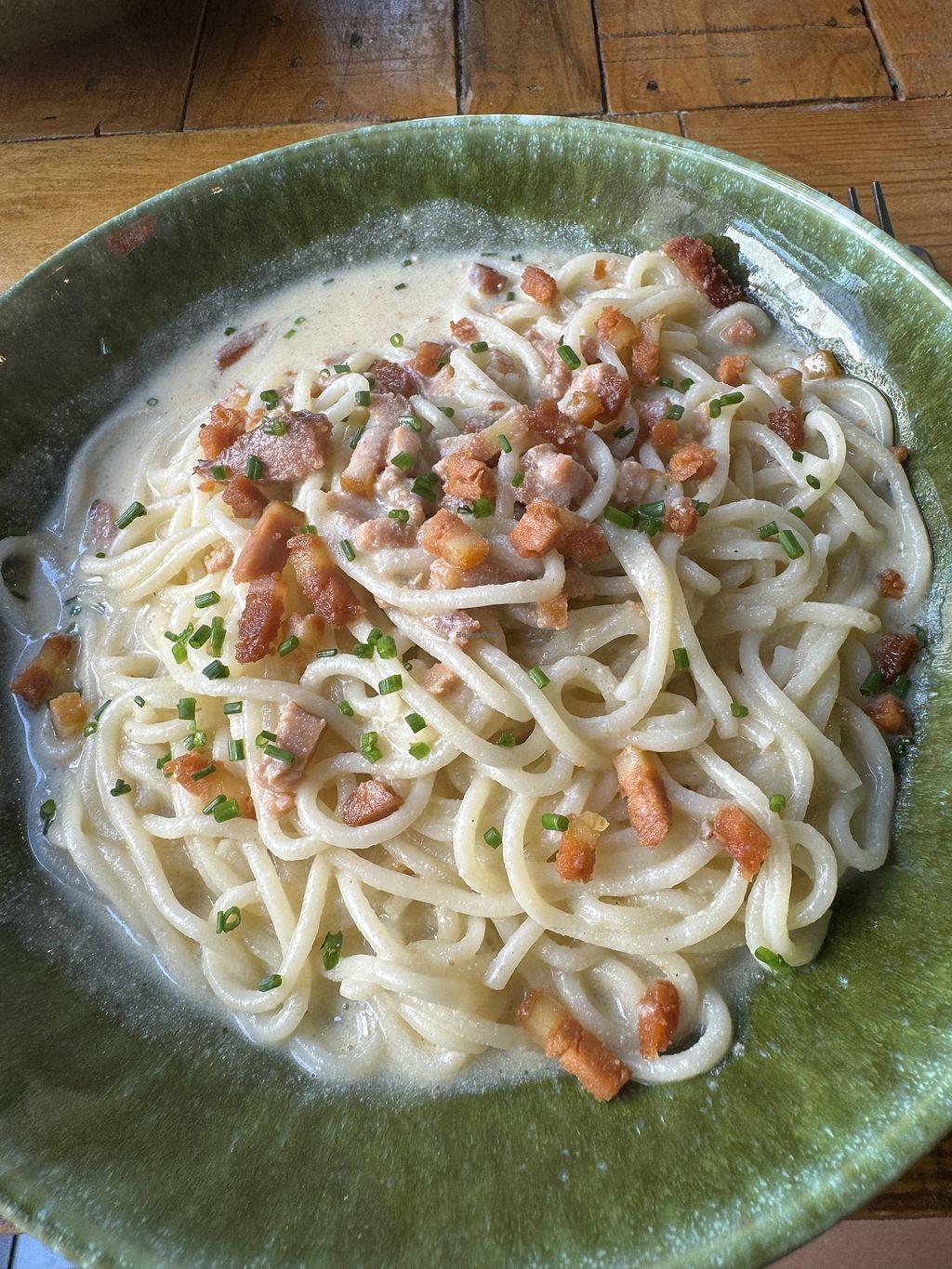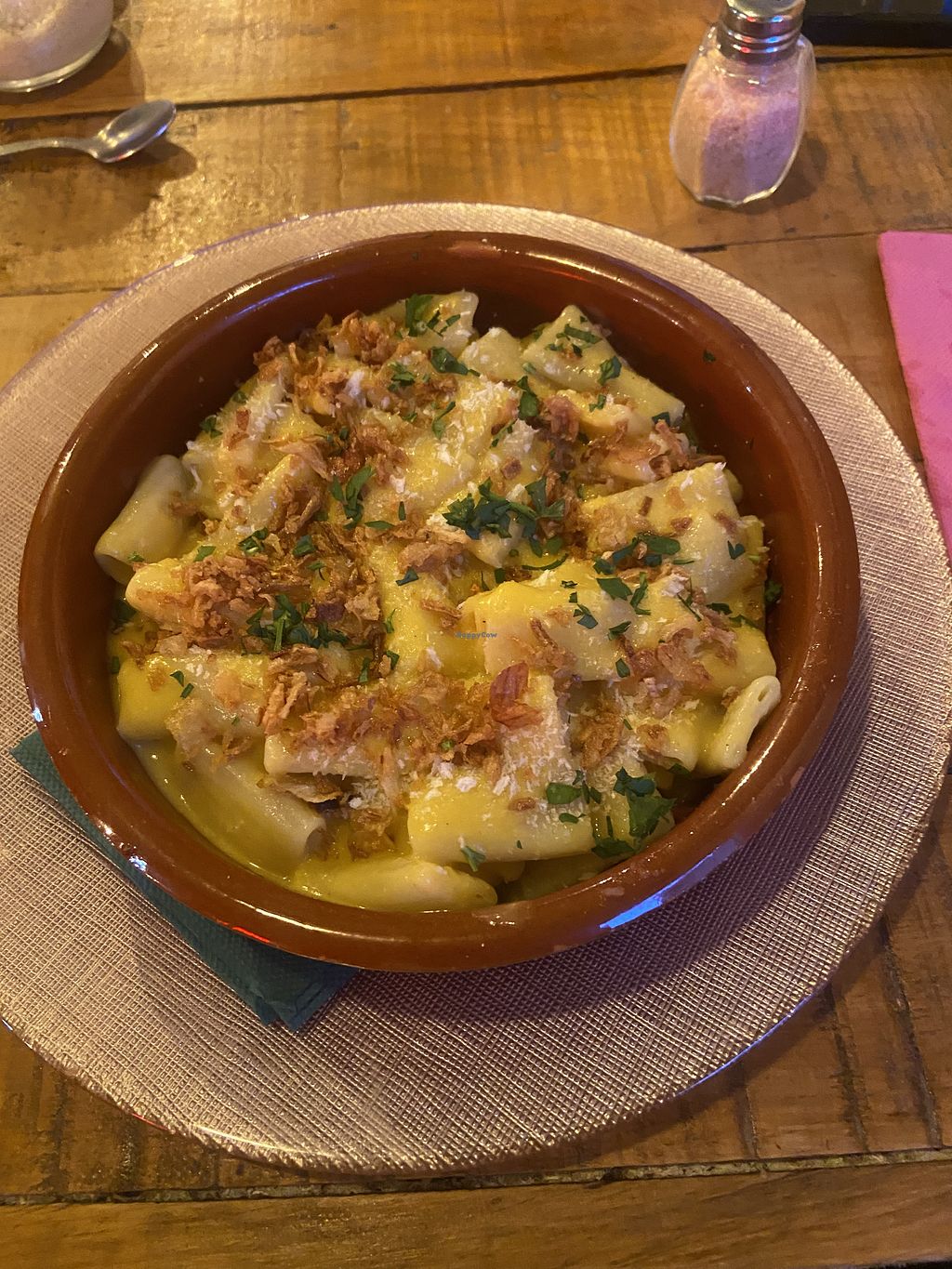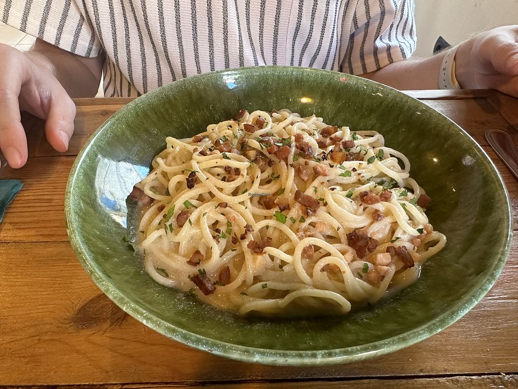 We ordered carbonara and risotto but sadly we were too full to enjoy , so we will go again next week and just have the cheese board and then a main Caesar salad and try the Donuts if room!