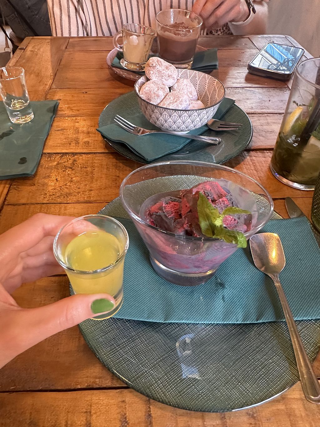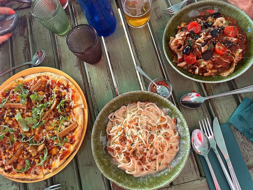 The decor is beautiful. We had the larger Caesar salad as a shared starter and it was absolutely unbelievable. So tasty. High recommend that! It was our favourite, For drinks they do offer a few things like gin and tonic, they didn’t have tonic at the time so I had a mojito. For mains we had the carbonara and the formentera. Both so fresh and delicious. For dessert we had mini biscoff donuts, again super fresh and delicious. We also had raspberry ice cream with a limoncello shot and the affogato - everything was absolutely amazing. Could not fault it.
