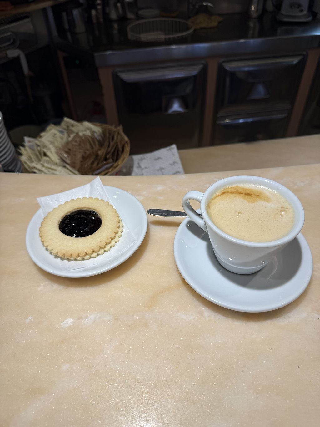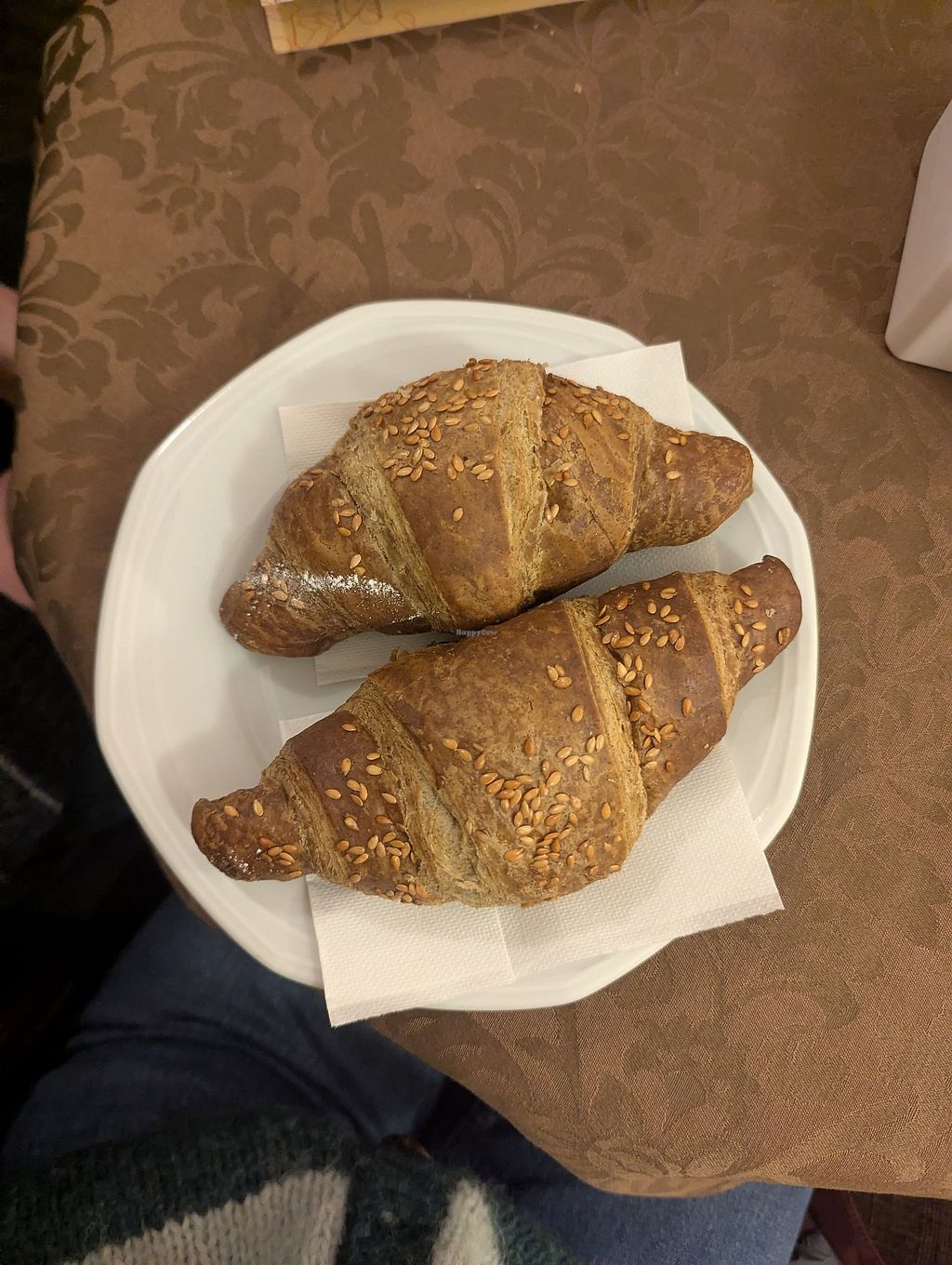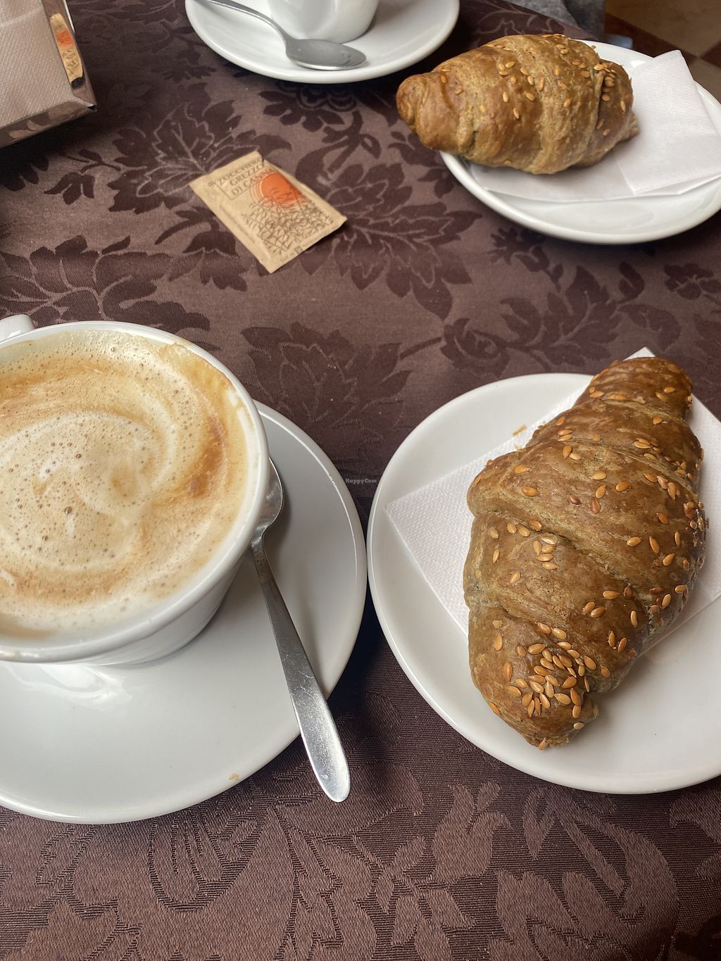 Delicious vegan croissant and cookie. Cappuccino with soy milk (not on…