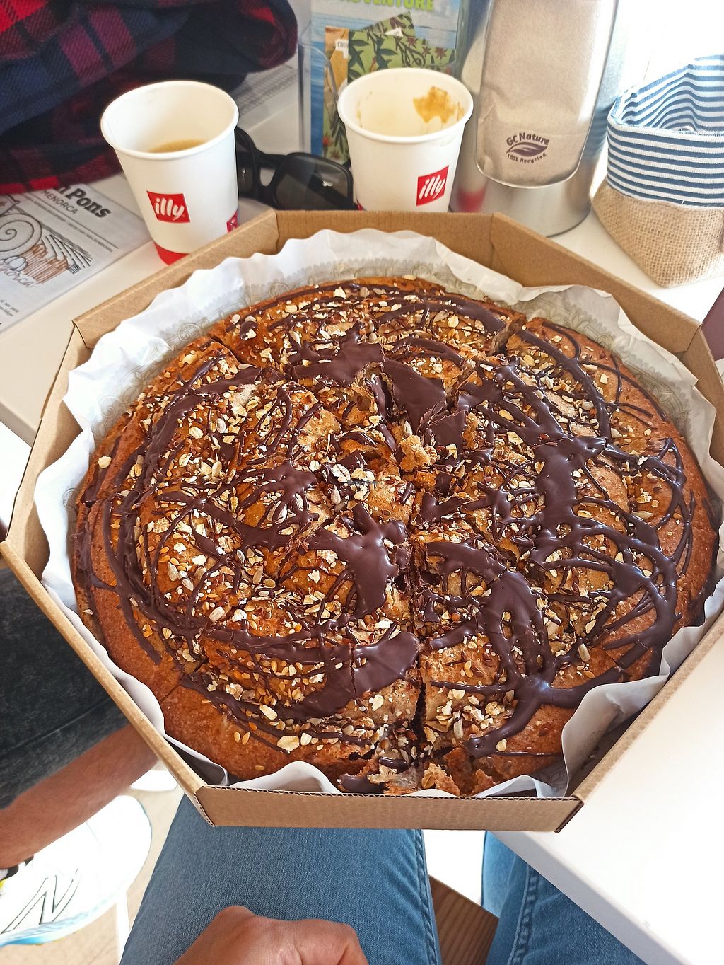 Ensaimada itself is nice, chocolate inside tasty, i ordered one week before we were coming😄only thing we really didnt like are the seeds on the top. Too much too iritating and also buckwheat!! Which was not nice for the teeth. Without this unnecessary adds would be perfect maybe little bit of sugar 😀 they have good coffee (Illy i love the Brand) and also oat milk!! Lady was also very nice and friendly