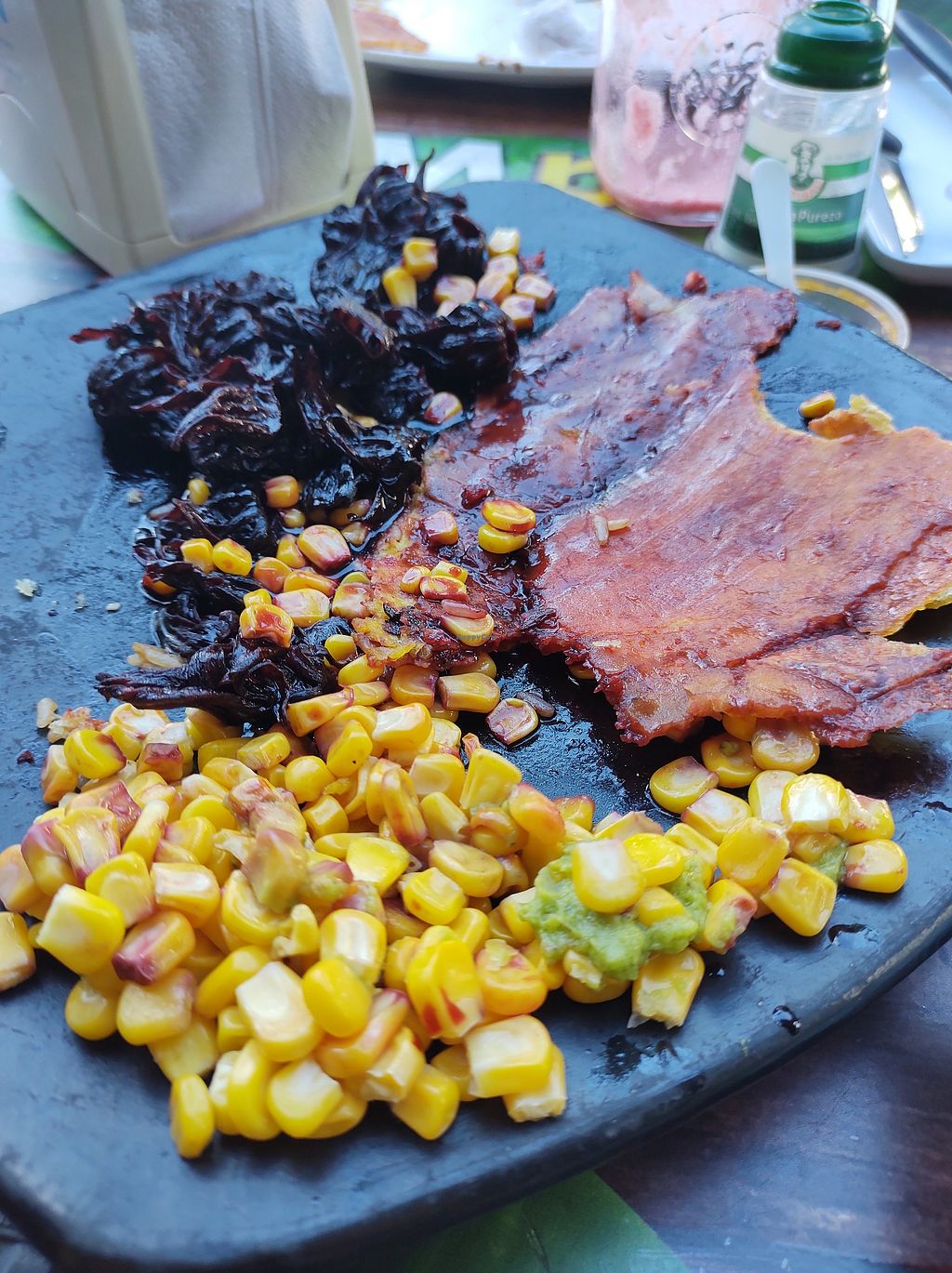 Cons: Corn was rotten, Plantain was hard and uneatable, Too much Jamaican flower