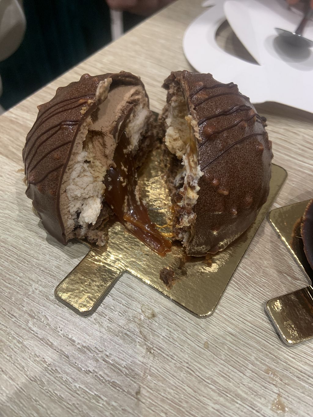 Read moreThey two I had were biscuit bases with mouse domes covered in a shiny glaze, with various fillings inside the mousse.