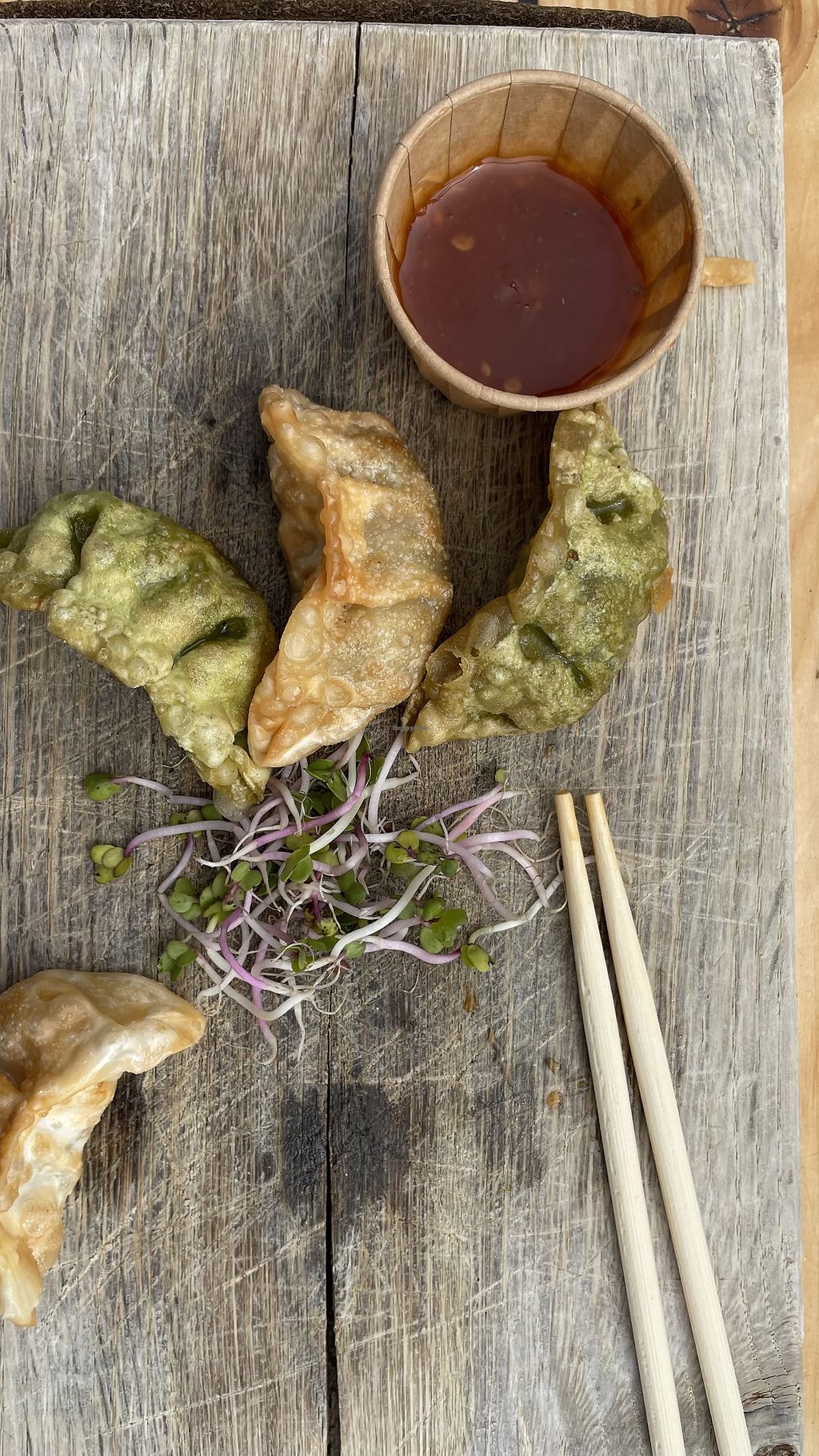 Sweet potato fries, grilled veggies in hoisin, pimente de padron and g…